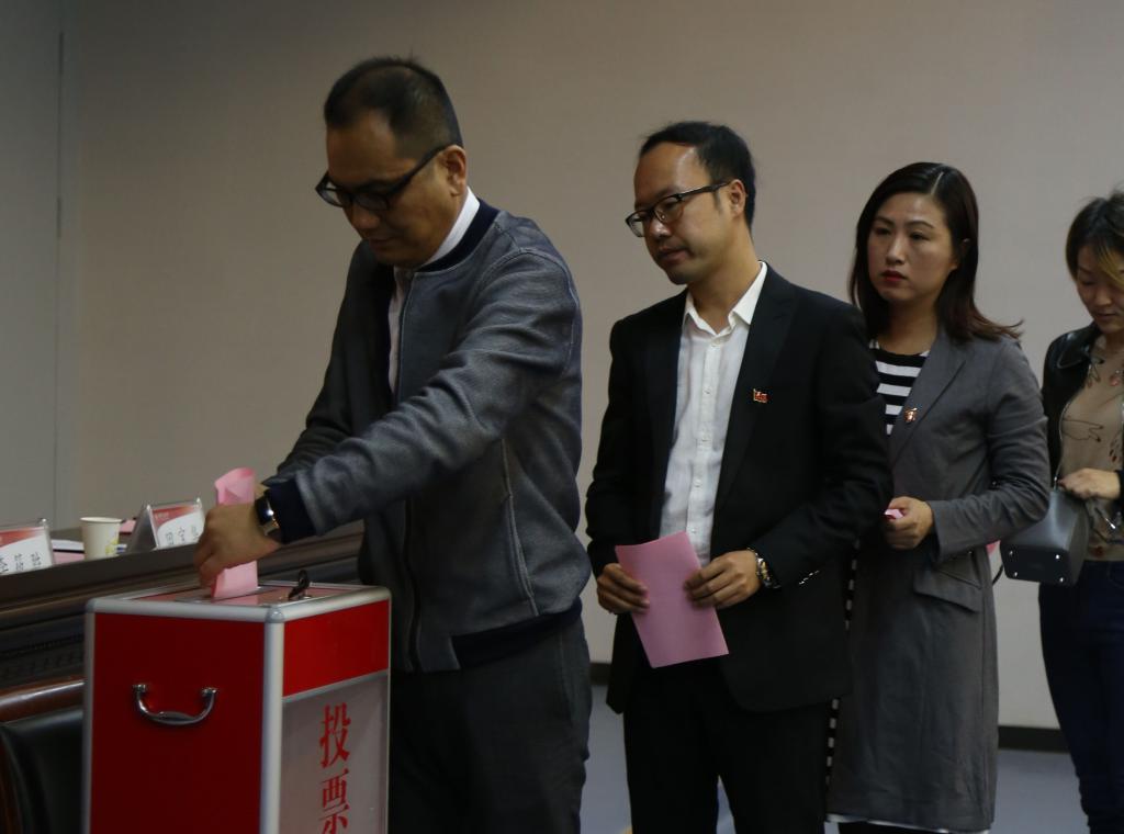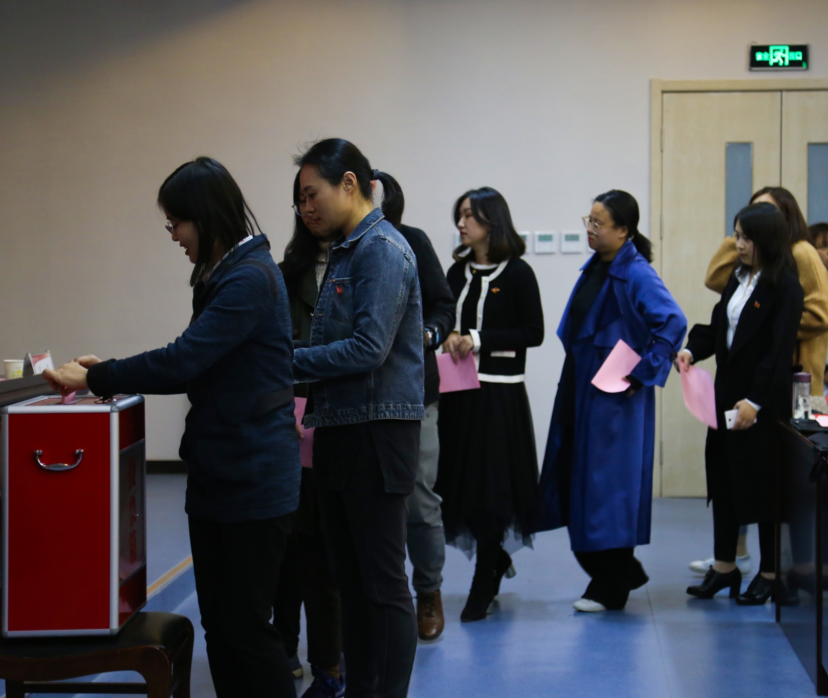 委员会成员环节。院长戴鸿首先宣读了校党委关于学院党委委员候选人预备人选的批复文件。大会通过贾莉等四位同志分别担任总监票人、监票人,黄博宇等四位同志分别担任总计票人、计票人。大会按照有关程序选举产生了李筱胜、戴鸿、张骥、田宝华、袁燕、王教庆、任军等七名新一届学院党委委员。