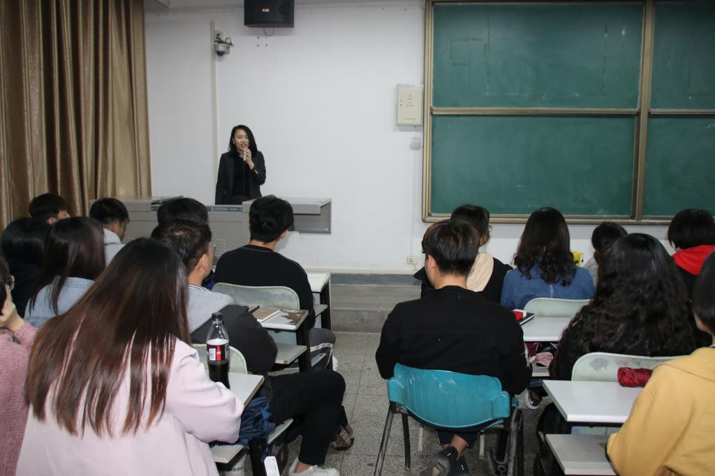 为了增强专业学习氛围,促进服装学院学生对服装市场的了解,加深学生对服装行业演变趋势的认识,2018年10月19日下午,服装商学系在金花校区226教室特邀我校2004级校友、陕西良体才衣服饰有限公司总经理、西安合极服饰有限公司董事长李娇女士作了“定制人生”专题讲座。服装商学系、内衣系共100余名师生到场参加。讲座由服装商学系主任梁建芳主持。