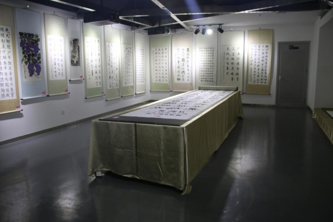 服装学院师生数部作品也加入到了这一书画盛宴,为我校独立建校四十周年校庆增添了亮丽的光彩。其中,服装学院2015级研究生周冲同学耗时数周创作的长篇巨幅书法作品《工程赋》引起了人们的广泛关注。