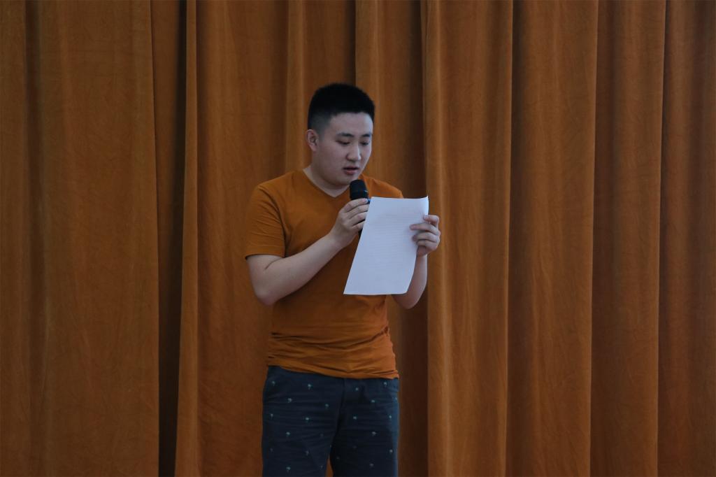 30日决赛当晚,服装学院主席团代表刘阳为本次比赛开场致词。在致词中他提到,才能是我们人生中最宝贵的财富,是金子总会发光,每一次机会都是为我们最后的成功做铺垫,愿同学坚定信念,为梦想扬帆。讲话完毕,主持人宣读本次比赛的奖项标准、内容要求、评分方法等规则后,演讲比赛正式开始。