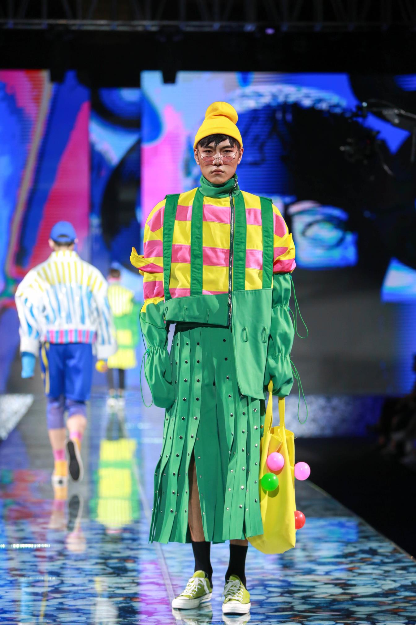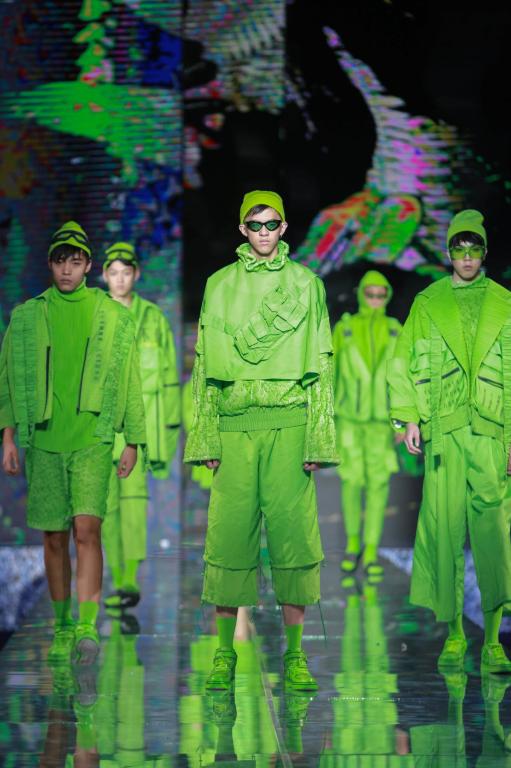 参加本次大赛的毕业设计作品主要是从服装与服饰设计专业(含时装设计方向、针织服装艺术设计方向、时尚形象与陈列方向及卓越设计师计划班)近300多个系列中精选出来的,分为动态展和静态展两部分,动态展作品27个系列、近160套优秀的系列设计作品,静态展作品有17个系列、36套服装。与往年相比,本次的作品发布的独特之处在于——希望年轻人停下疾驰的脚步、驻足停留,从“汉”文化的视角切入,慢慢体会和思考西安作为十三朝古都的文化底蕴与内涵,强调对中国传统服饰文化的挖掘与研究。毕业设计作品中,除了强调西方服饰结构的立体块面,同时还通过服饰结构的披挂缠裹、手绘的写意水墨画、手工刺绣装饰等,强调出对东方传统文化的尊重与继承。当然,在年轻设计师的手中,所有这些又和迥异的材质对比、强烈的色彩碰撞、夸张的体量对比相融合,代表了新生势力、新锐视角的全新诠释。此外,今年的毕业设计作品中,男装系列的数量和比例也较往年大幅增加。