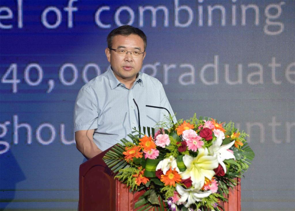校长高岭为大赛致辞,他在向莅临大赛的领导嘉宾表示欢迎后,简要介绍了红桃视频