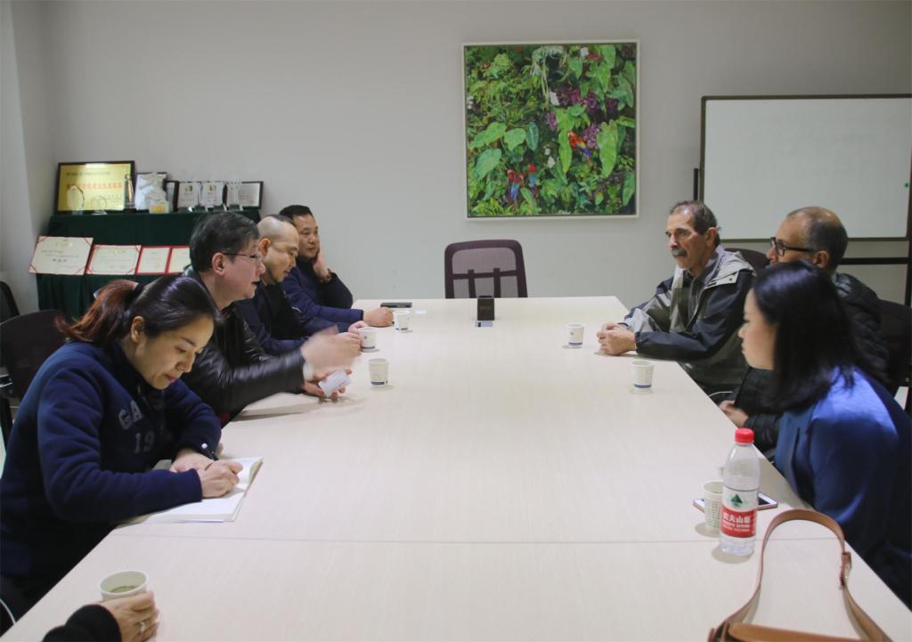 参观结束后,两位教授在服装楼三楼会议室和服装学院戴鸿院长、田宝华副院长等就参观产业园以后的感想以及未来的合作计划进行了深入的交流和探讨。双方总结了学校发展合作方面的若干共同点。戴院长在会谈上邀请美方参加我校即将在六月举办的艺术论坛以及今年的袜业大赛。北岭分校方面对活动表示非常期待,并表示计划今年再送两位教授来我校进行一个为期一周的访问,后续再安排交换学生。会谈上,田宝华副院长提出双方共同远程教学的提议,得到北岭分校副系主任的认同。双方还对艺术、设计领域的现状和未来交换了意见,均认为艺术教育重在培养学生的创造力,开拓学生的艺术思维,并给他们的未来提供更多可能性。在平面设计基础课教学方式方法上,双方也进行了探讨,指出了对方学校教学方面的优点和可能性。