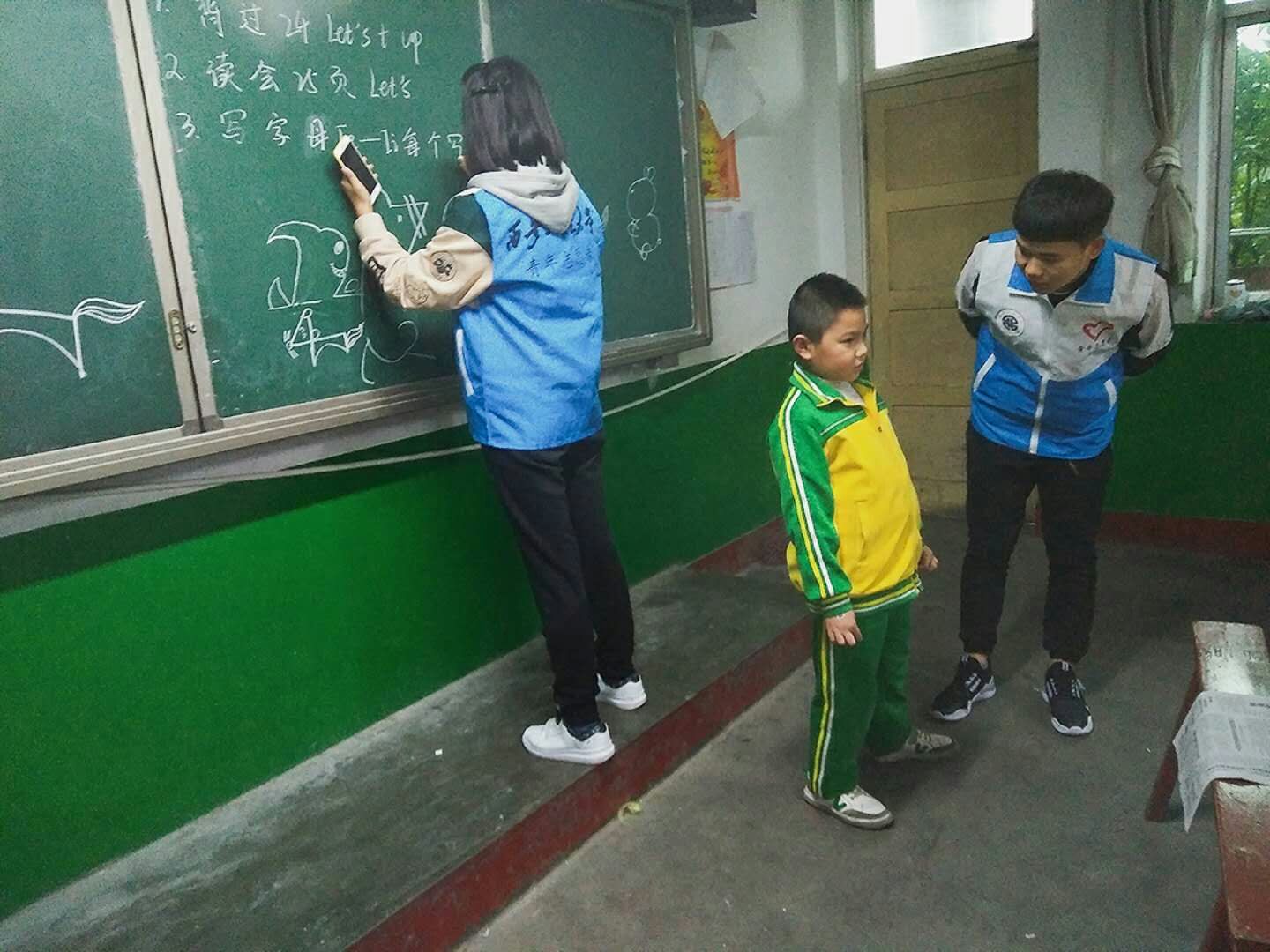 下午三点四十分,支教正式开始,在进行简单的自我介绍后,志愿者睢延麟、门靖怡分别给孩子们从心理和生理两方面的问题展开讲解,教导孩子们要正确对待情绪、把控情绪;鼓励孩子们要多吃绿色健康食品,远离油炸膨化食品,让自己的身心得到全面发展。此外,志愿者们教孩子们学习了简笔画,还和小朋友们一起做了击鼓传花表演节目的游戏,这丰富小朋友们的学习生活,提高学习兴趣,而孩子们认真专注的神情,也深深感染了志愿者们。孩子们一个个都有自己特长并十分乐于展示,大家在玩耍的过程中也获得了知识,达到了本次支教活动的预期效果。