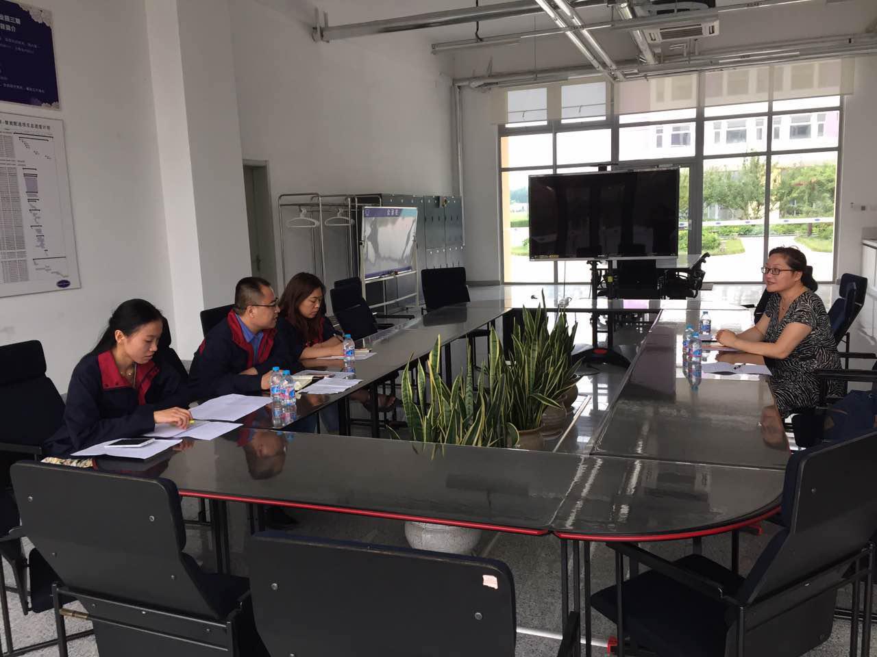 到了安莉芳山东工业园之后,安莉芳的高层领导亲切的为师生们介绍了这里的生活环境,实习工作的整体安排,学生专业的课程设置,并着重的介绍了山东安莉芳工业园的发展历史和公司理念,我校内衣系主任刘驰教授和温星玉老师与安莉芳高层领导展开深入的交流。