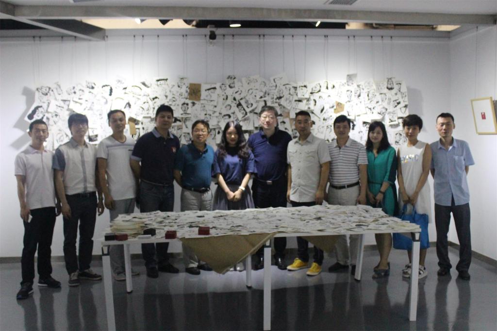 随后,到场嘉宾合影留念。刘婵陪同各位嘉宾参观了个人版画等参展作品。