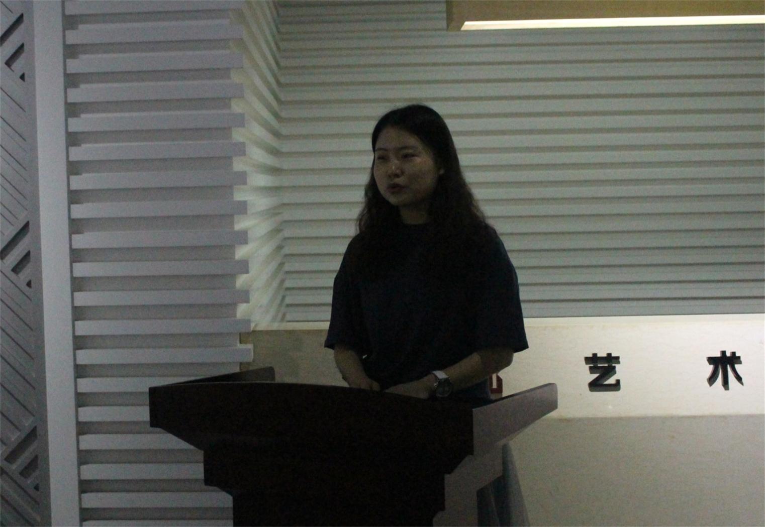 我校94级校友,刘婵同学签约单位的负责人也在开幕式上讲话。他简要介绍了和刘婵同学认识的经历,并对刘婵同学的艺术造诣给予了较高的评价,期待能够与刘婵同学今后在工作单位合作愉快。