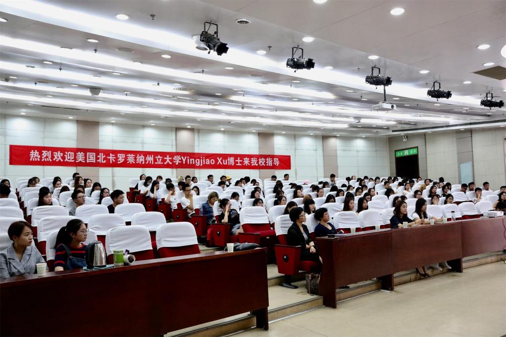 邀请美国访问学者徐英娇教授在我校临潼校区图书馆一楼报告厅成功举办第四期《艺术大讲堂》。服装学院部分老师和相关专业学生两百余人聆听了此次讲座。讲座由服装学院党委书记李筱胜主持。