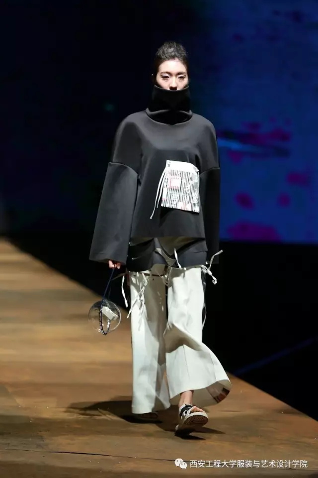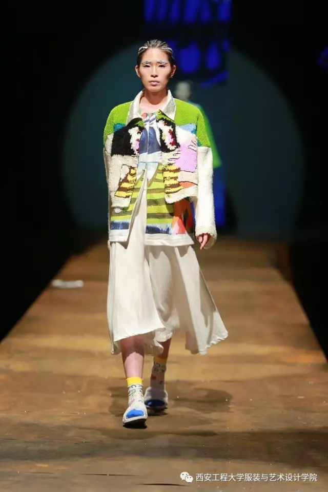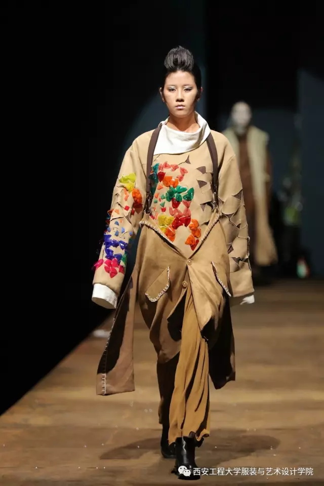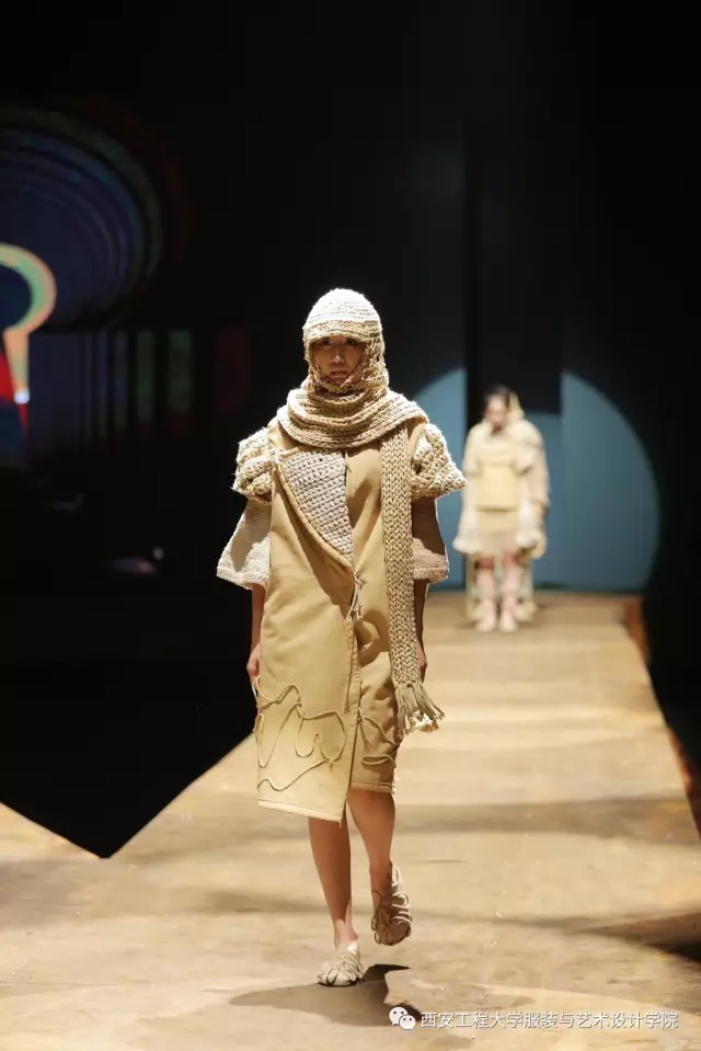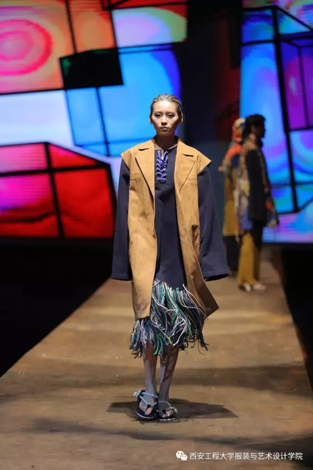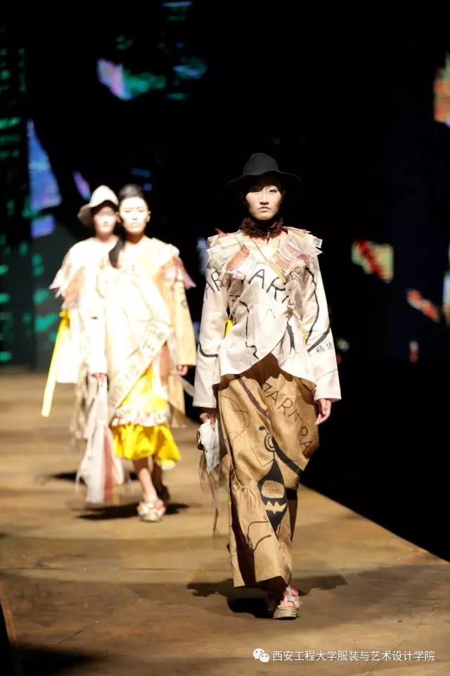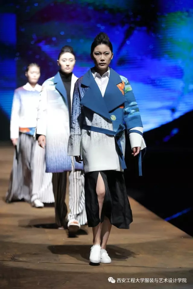 随后,进入到了比赛环节。参与本次服装设计大赛的服装设计毕业作品是从服装设计系与服装表演系近300多个系列中精选出来的30个系列近160余套优秀的毕业设计作品。本次毕业设计的主题为“丝路畅想•行走”。行走(Walking),强调了一种状态,溯源(Sourcing)、流连(Wandering)、神往(Fascinating)代表了行走过程中的不同阶段的体验,也是本次毕业设计展演的三个分主题。行走,代表了一种谦逊、低调、务实的姿态,表明在这条文化苦旅中上下求索的精神。行走,也是一种心态,表明了年轻人,在行走中进步、完善自我,且行且沉着。行走,同时也是一种浏览和阅历,是对丝绸之路文化之旅中丰富多元的人文意趣、民俗文化、民间传统工艺等的梳理与再现。