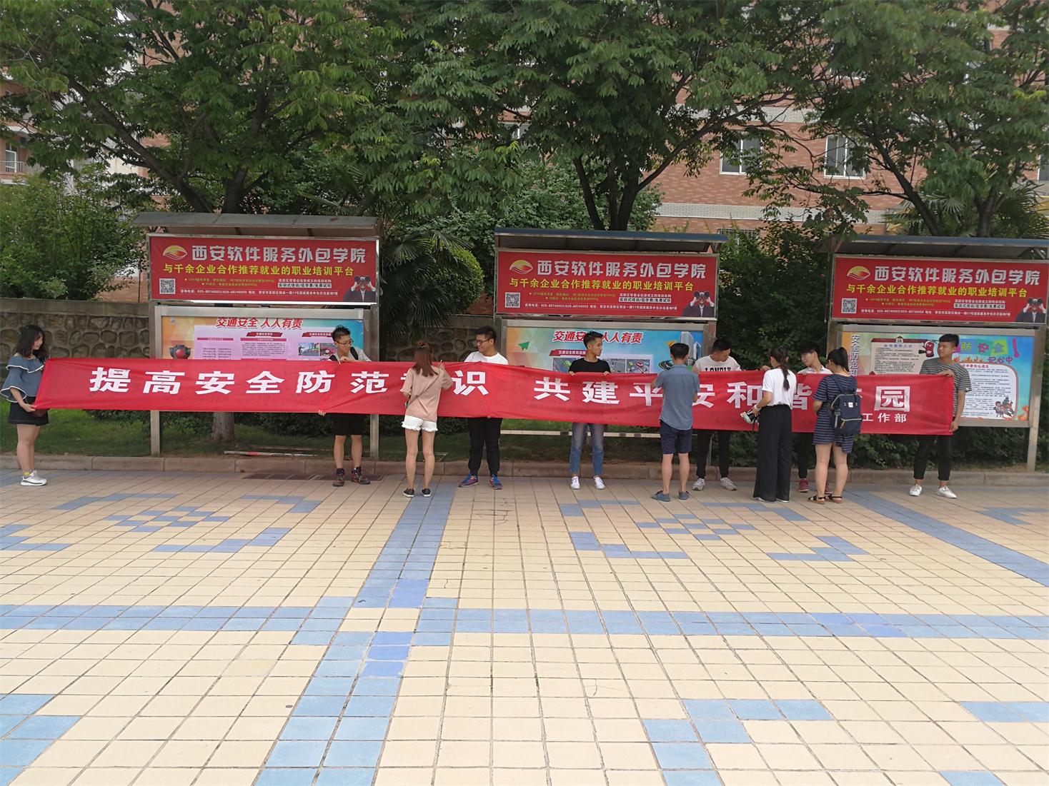 学生安全防范知识宣传展暨现场签名活动”在临潼校区中心广场举行。