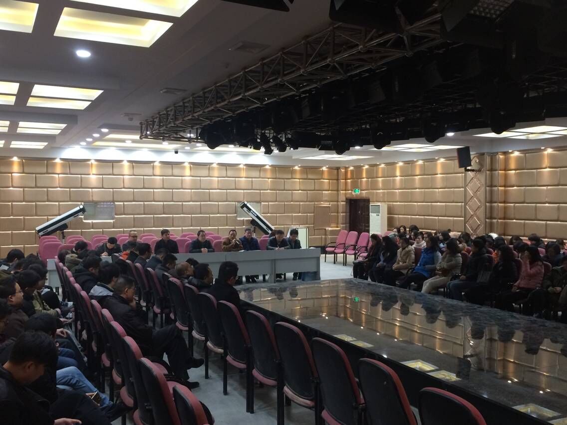在金花校区服装楼一楼多功能厅召开全院教职工大会。校纪委书记朱君强,党委组织部刘俊富、杜小刚,服装学院领导班子全体成员及全院教职工共170余人到会参加。大会由服装学院党委书记李筱胜主持。