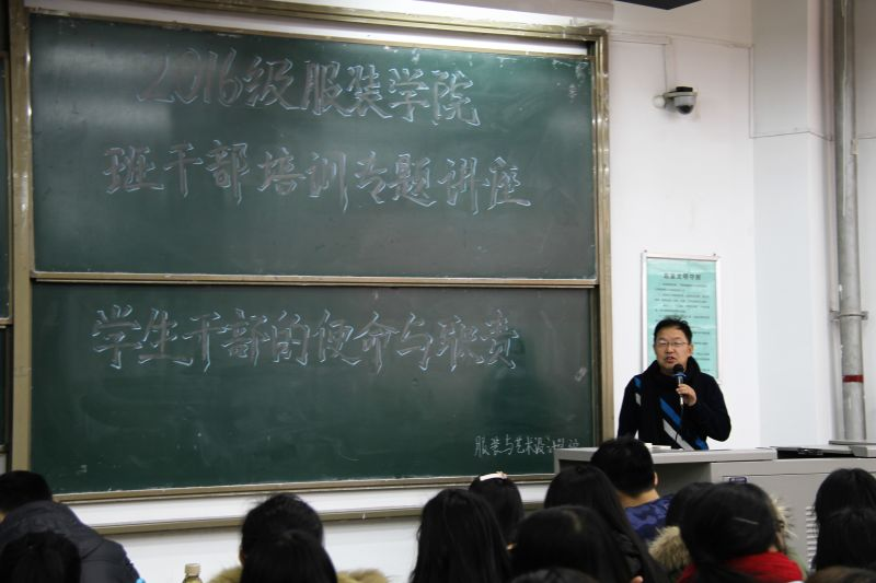 为使学生干部更好更快的适应岗位,完善学生组织运行机制,提高学生干部素质,加快素质型学生组织建设,服装学院于2016年12月5日中午组织2016级班级负责人参与干部培训专题讲座。服装学院党委书记李筱胜、学生工作办公室主任张峰,辅导员黄博宇、孙晨倩、邵巍,2016级所有班级负责人及宿舍长参加此次讲座。培训由邵巍主持。