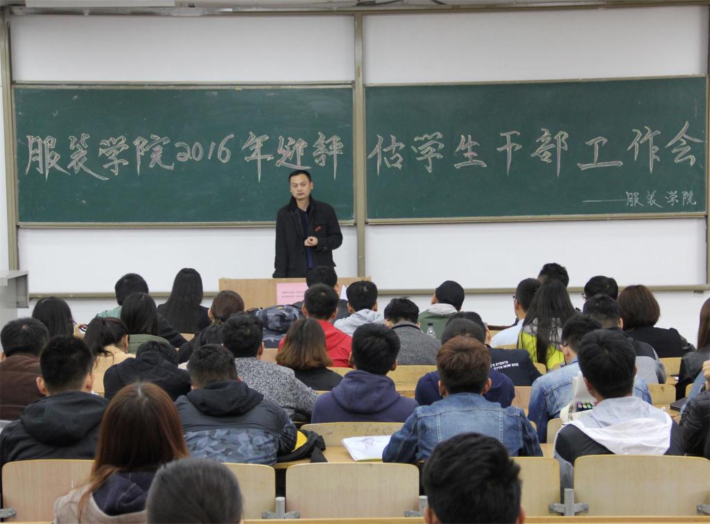 在临潼校区B-237教室召开服装学院2016年迎评估学生干部工作会。出席此次会议的老师有张峰、黄博宇、孙晨倩、邵巍,参加会议的有14、15、16级班委、团学科干部和办公室助理。