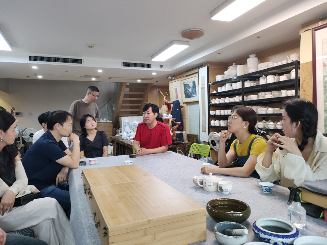 2024年5月20日,服装学院党委副书记马磊、团委书记马薏雯与造型系主任李朝霞副教授带领美术学部分应届生前往陕西卓信文化投资有限公司,调研西安市手绘陶瓷企业及行业就业现状与发展前景。总经理熊伟分享了他的职业经历,从银行工作到金嗓子销售,再到做艺术类杂志,最终专注于艺术品手绘瓷器。自2019年开业以来,公司每年接待数以千计的参观者,旨在将艺术品融入生活,让日常生活变得更具艺术感。