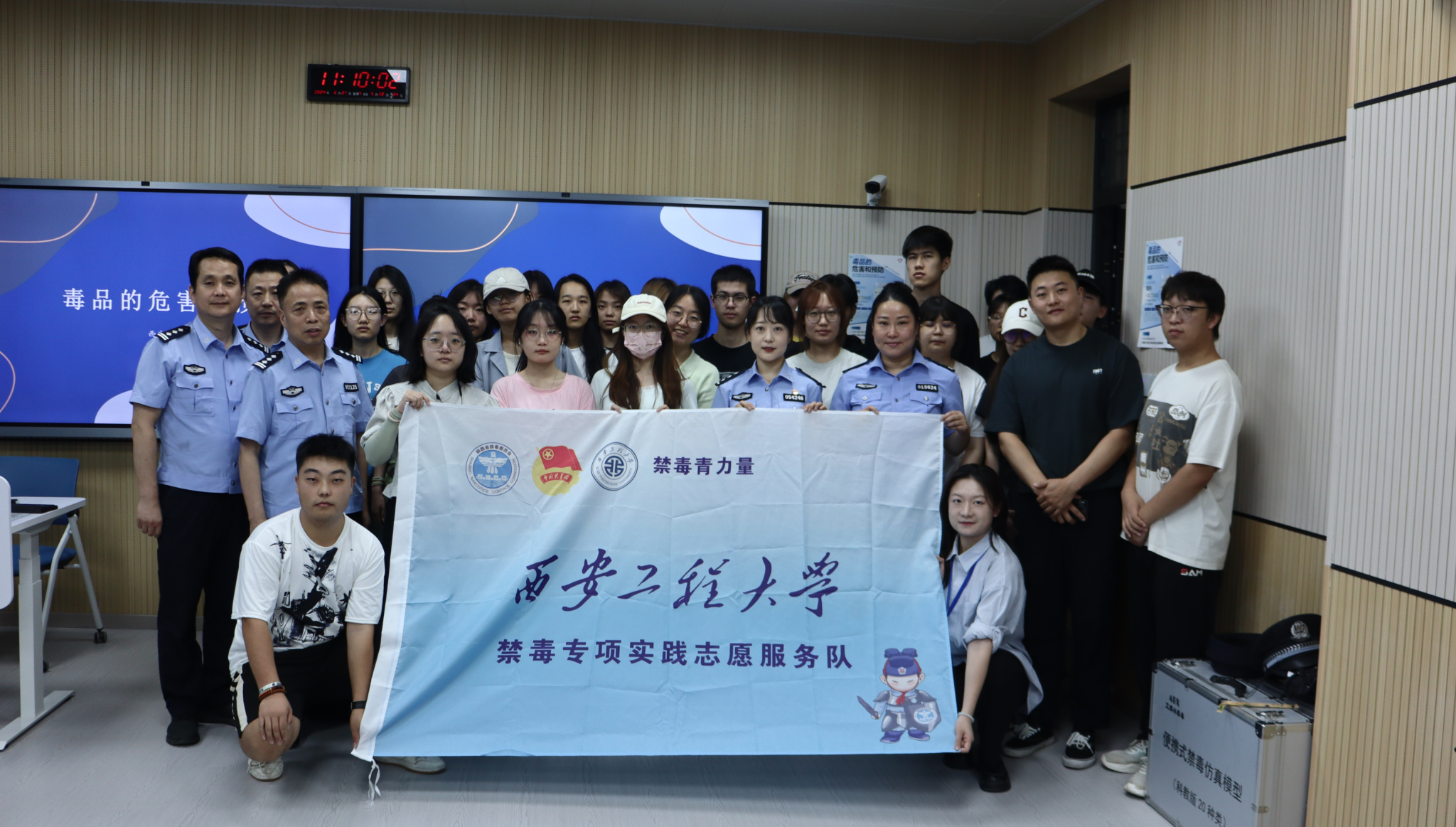 (西安市禁毒支队和碑林分局禁毒大队民警与参会师生合影)