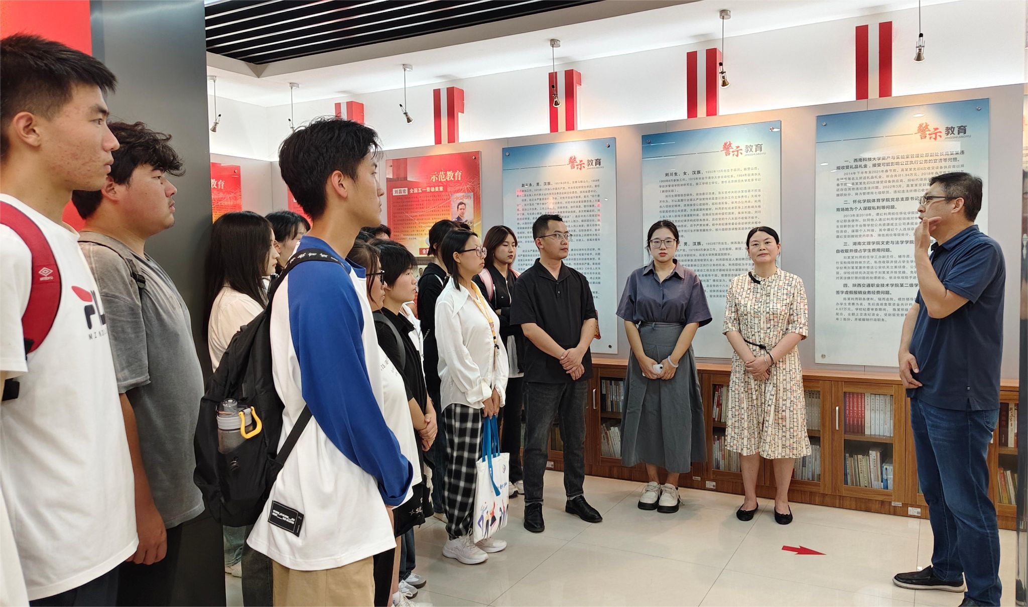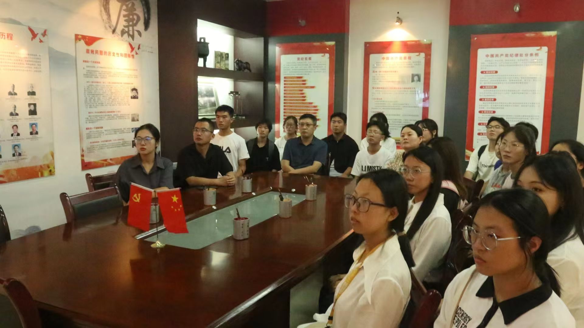 院党委书记苏博、院党委副书记马磊、副处级组织员吴艳杰、2024级新生辅导员王盼、姜萌,带领本科生服工党支部参观校廉政教育基地,开展“清风扬正气 廉洁守初心”主题党日活动。