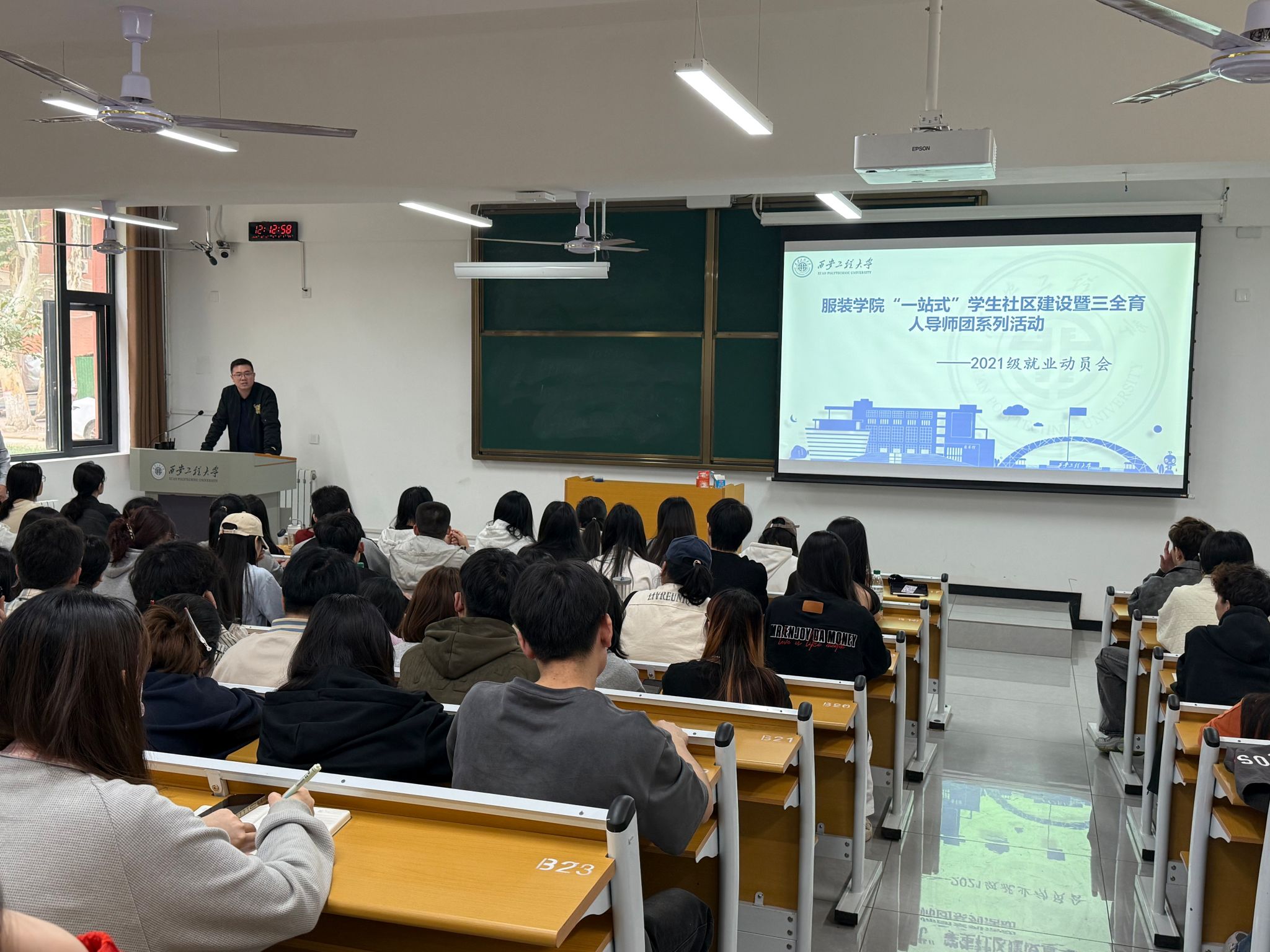 为深入学习贯彻党的二十大精神、二十届三中全会精神,以习近平总书记关于做好高校毕业生就业工作的重要指示精神为指导,帮助2025届毕业生深刻认识当前就业形势,激发毕业生的就业积极性,10月11日中午,在主楼101教室召开2025届毕业生就业动员大会,参与此次大会的有服装学院党委副书记马磊、年级辅导员邢烜毓、刘文奇以及21级全体班委。