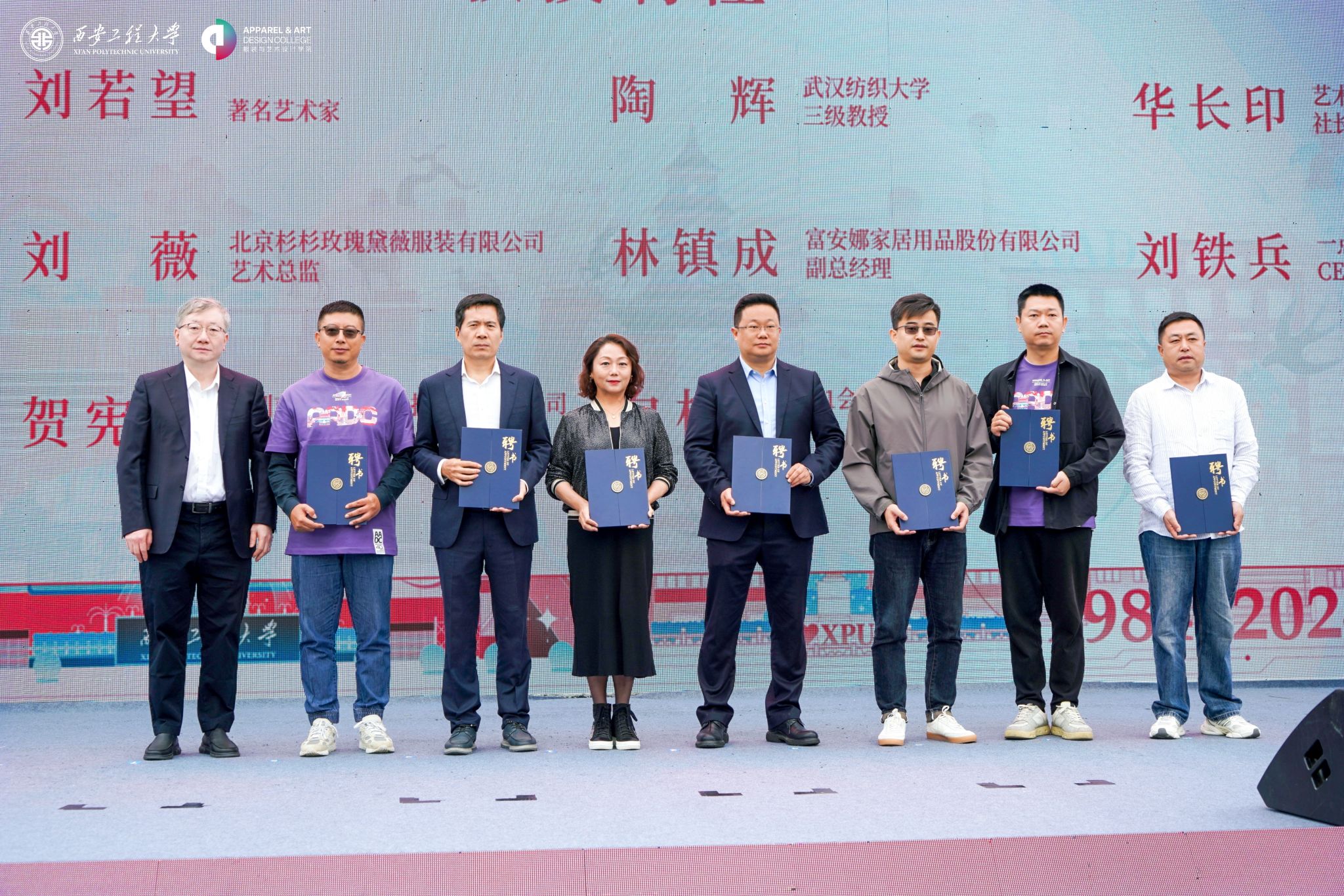 会上,副校长朱永民为叶菲校友等及企业代表颁发捐赠证书;副校长戴鸿为著名设计师韩家英、刘薇,著名艺术家刘若望,武汉纺织大学教授陶辉等10人颁发客座教授聘书;副校长夏蔡娟、张洛红为富安娜集团副总裁杨彬,意尔康股份有限公司研发副总经理李海章,影儿时尚集团华中分区总经理何曦等20人颁发行业导师聘书;服装学院副院长袁燕与安踏体育用品有限公司、凌迪数字科技有限公司、深圳博客时代科技开发有限公司等10个院企合作基地签约。