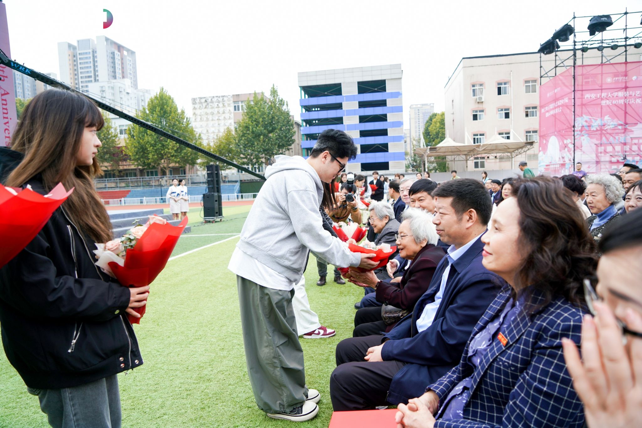大会向为学院奠基和发展作出过突出贡献的朱松文、李枚萼、吴铭、郑吉发等40位退休老领导、老教授献花致敬。退休教师代表徐青青教授回顾了学院创建及发展的奋斗岁月;校友代表、中国服装协会副会长杜岩冰表达了对母校的感恩和祝福;教师代表王教庆副教授在发言中表示将继续用爱履行责任,用心躬耕教坛潜心育人;学生代表、2022级研究生郎雨欣分享了成长与收获。