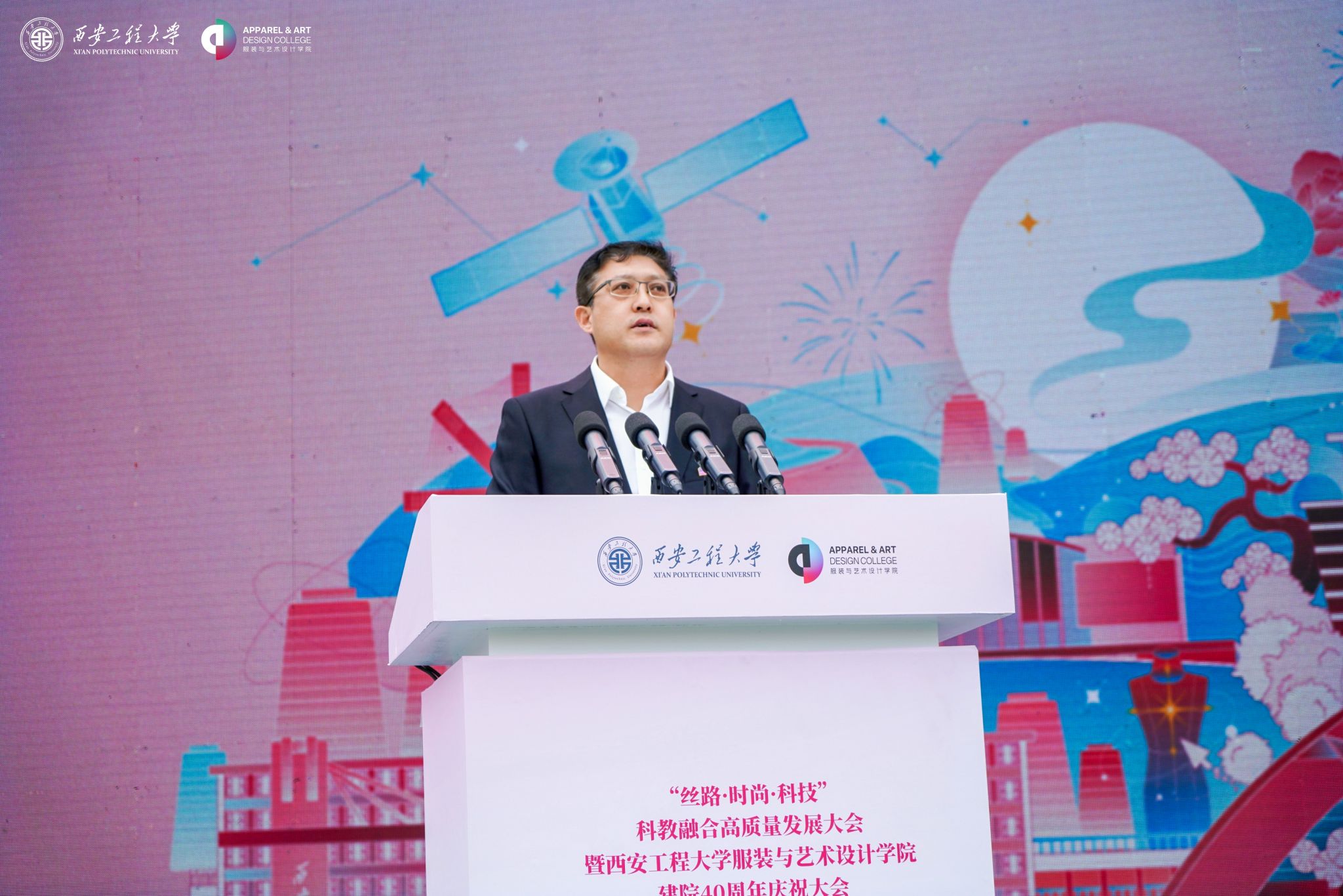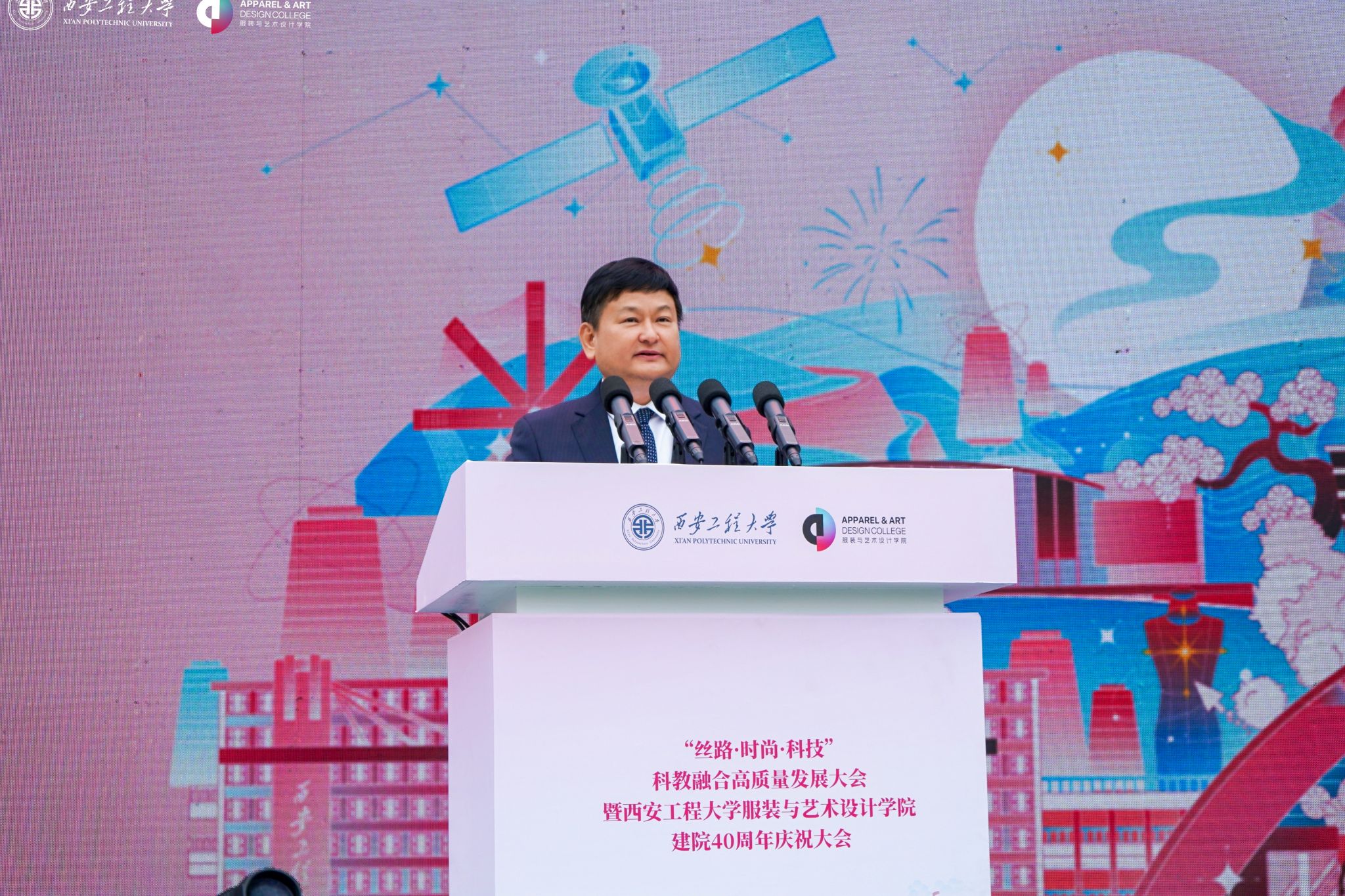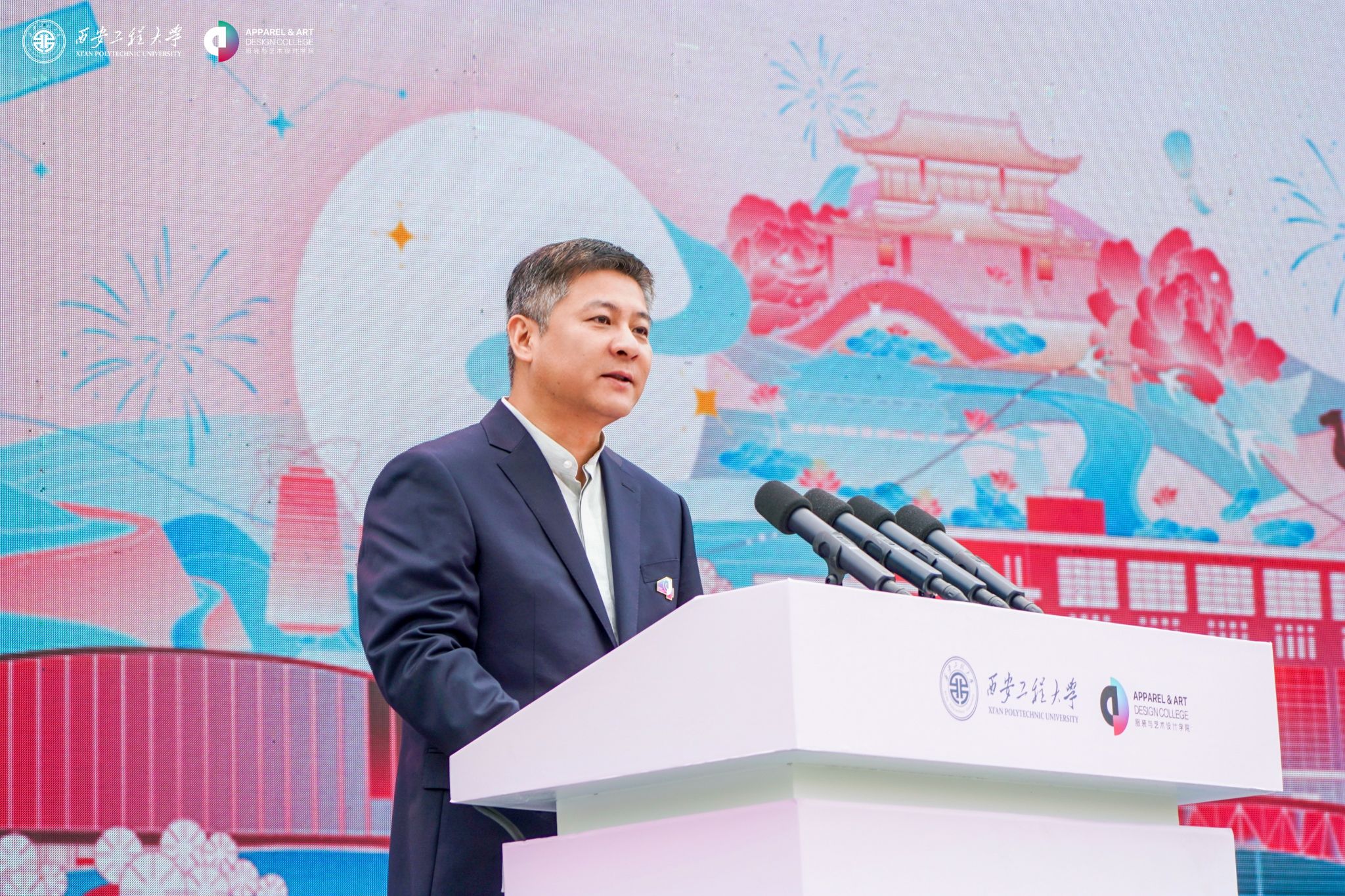 校党委书记马万清在致辞中介绍了学校的历史沿革和服装学院的办学特色及办学成效。他表示,学校在百年办学历程中坚持立足陕西、辐射全国,构建了完备的服务现代纺织产业的人才培养体系。服装学院在长期办学过程中主动融入国家发展大局,坚持“立德、著艺、融工、强效”人才培养理念,形成了“厚基础、重实践、求创新、艺工结合”的办学特色,创建了我国首个服装专业硕士学位授权点,为国家服装领域产业发展做出突出贡献。马万清指出,党的二十届三中全会胜利召开,为进一步深化教育综合改革指明了前进方向,学校将抢抓“教育科技人才体制机制一体化改革”机遇,深入挖掘设计学科优势特色,勇担推动原创设计、赋能时尚产业新质生产力的发展使命,加快建设特色鲜明的高水平教学研究型大学,奋力书写新时代学校事业高质量发展新篇章。诚挚欢迎社会各界朋友和校友们来校交流、共话发展、共赢未来。