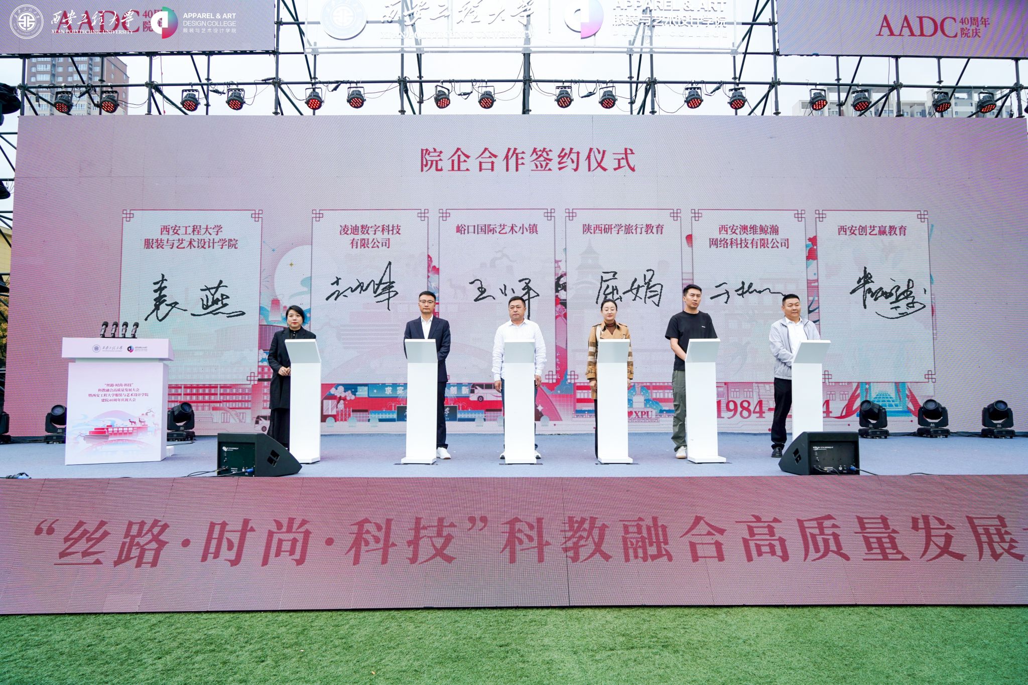 在金花校区举办“丝路 时尚 科技”科教融合高质量发展大会暨建院四十周年庆祝大会。校领导马万清、朱永民、戴鸿、夏蔡娟、张洛红,国内相关领域专家学者、行业领军人物、企业代表及支持学院发展的社会各界朋友,学院老领导、离退休教师代表,校友代表,学校各职能部门负责人及学院师生共4000余人欢聚校园,共庆华诞。