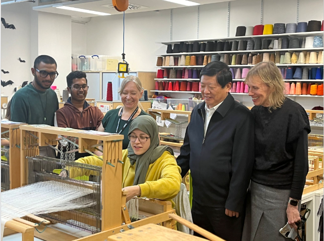 访问德蒙福特大学期间,王海燕一行与德蒙福特大学校长凯蒂·诺明顿(Katie Normington)、副校长兼大学院院长吉尔·考利(Jill Cowley)等进行了座谈,深入探讨了推进两校合作办学项目高质量发展,推动未来多学科、宽领域、全方位校际合作的路径,德蒙福特大学大学院代理国际副院长王嘉怡(Jiayi Wang)、服装学院院长卡洛琳(Carolyn)、课程管理负责人德力普·库玛尔(Dilip Kumar)参加会谈。两校还就合作举办的“服装与服饰设计本科教育项目”召开第二届联合管理委员会,总结了合作办学项目举办以来取得的成绩,为项目高质量发展达成诸多共识。王海燕一行还考察了德蒙福特大学的教学和科研情况,与德蒙福特大学学者和在校学生进行了深入交流。