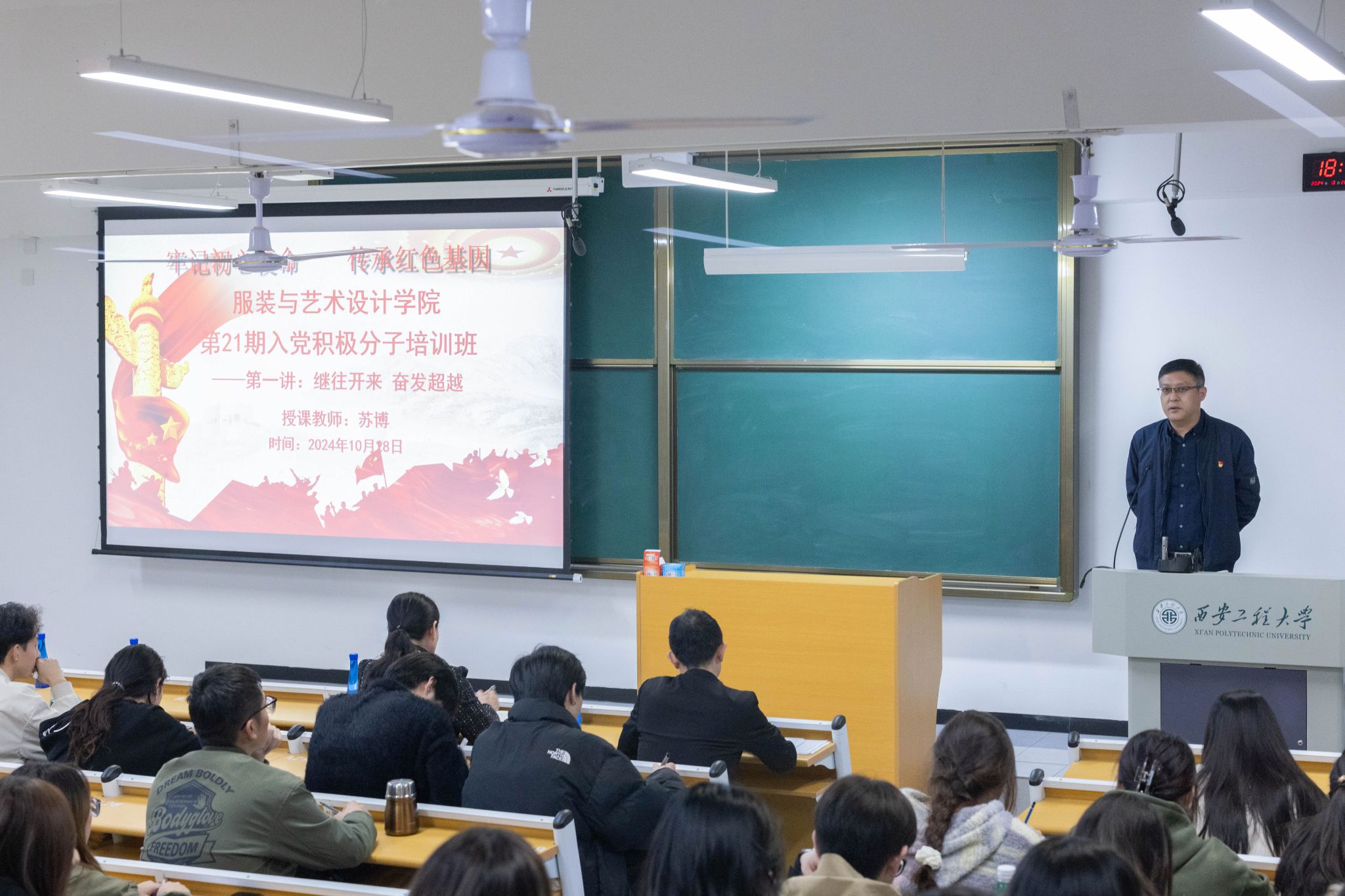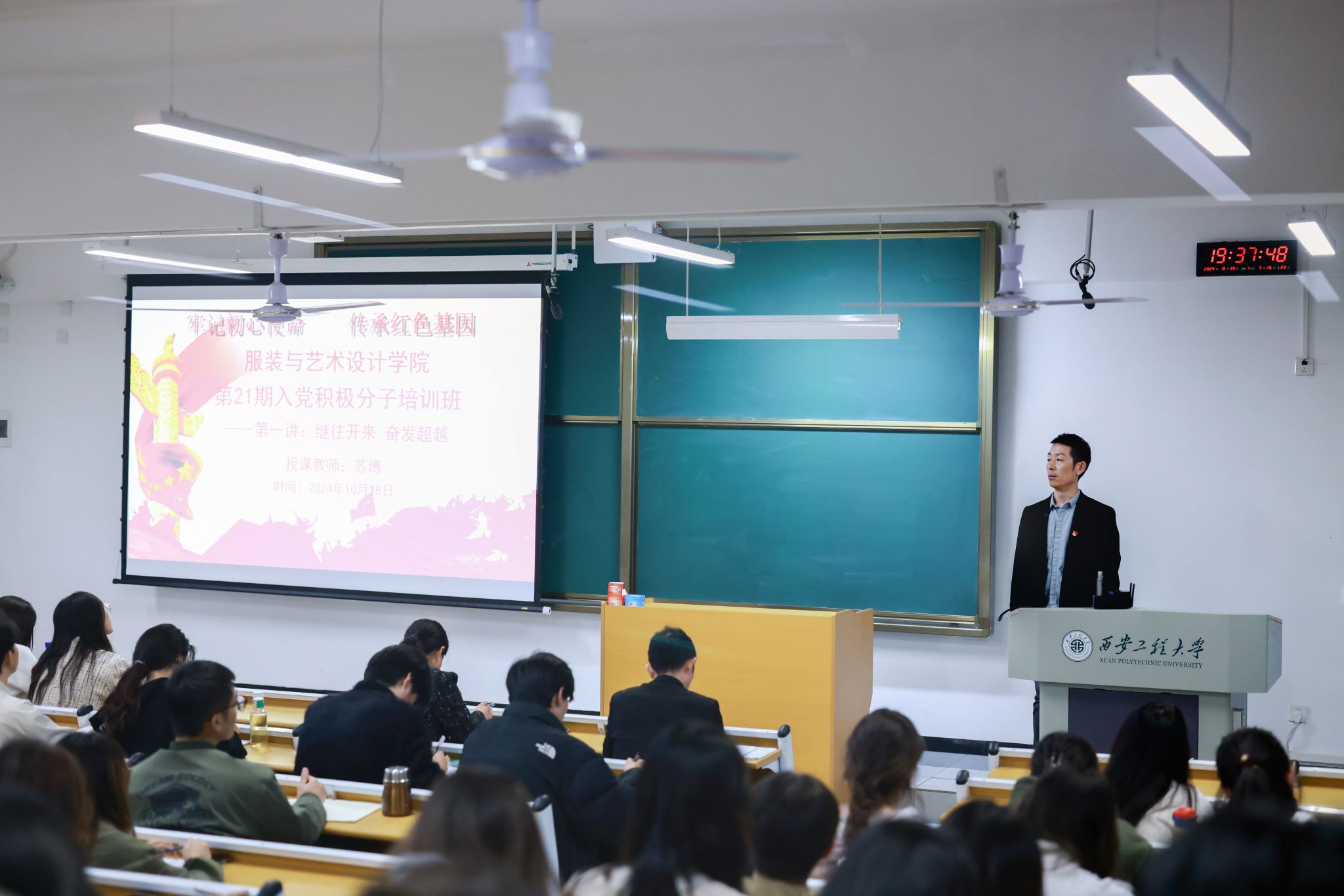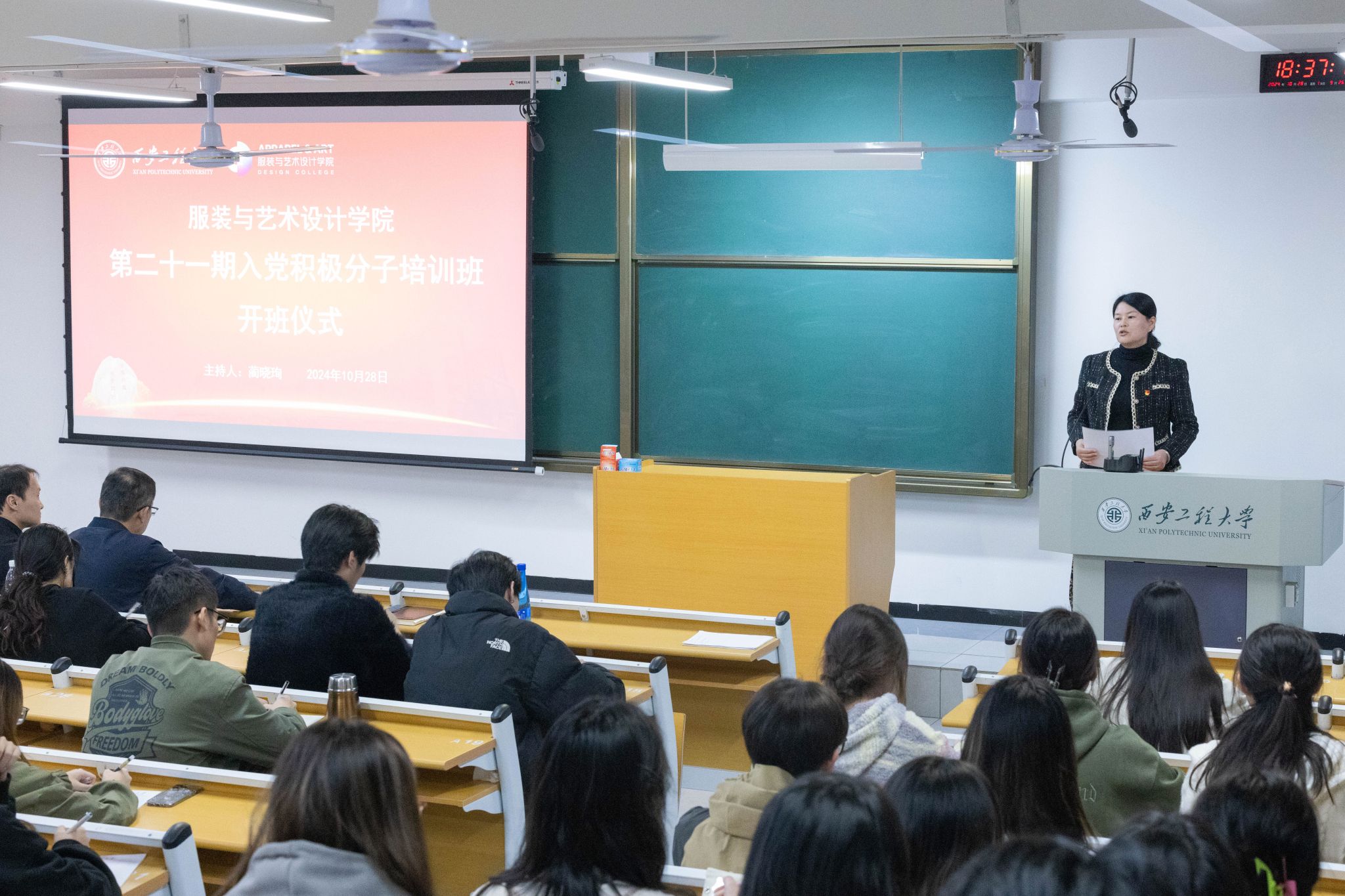 为深入学习贯彻党的二十大精神,进一步加强党员后备队伍建设,切实做好入党积极分子的培养教育工作,提升入党积极分子的理想信念和政治素养。10月28日晚,服装学院在金花校区1号楼203教室举行了第21期入党积极分子培训班开班仪式暨党课第一讲。学院党委书记苏博、副书记马磊、副处级组织员吴艳杰,各学生支部党员代表及学院第21期入党积极分子90余人参加了本次会议,会议由学工办主任蔺晓珣主持。