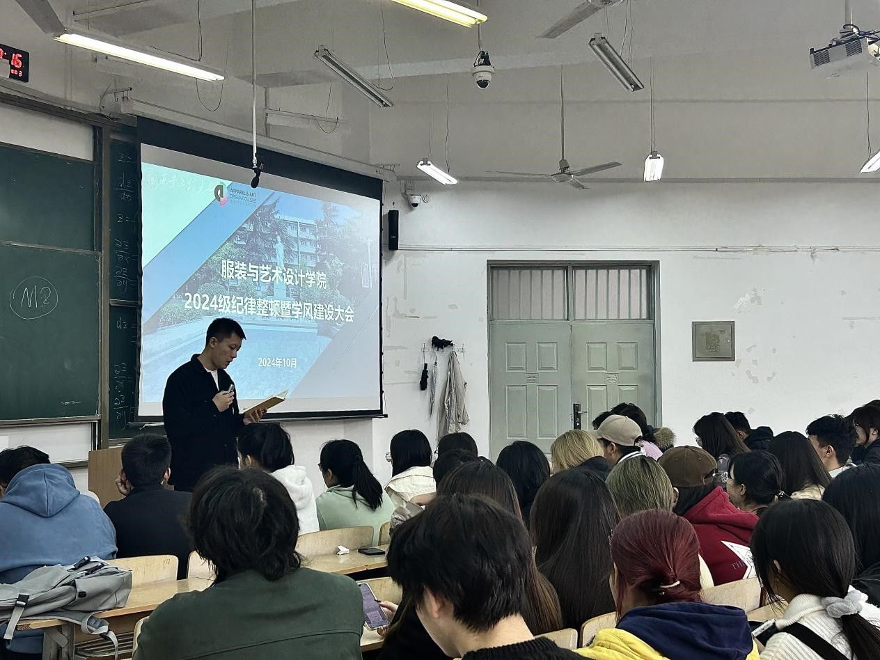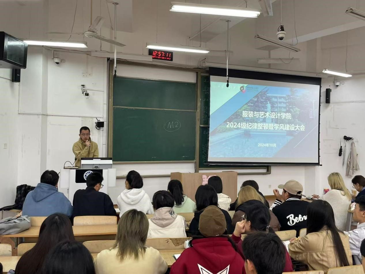 为进一步加强学院纪律建设,优化学风环境,促进养成教育成效,提升人才培养质量,10月30日,服装学院在临潼校区B135召开2024级纪律整顿暨学风建设大会。2024级全体班委,3名年级辅导员参加了此次会议。