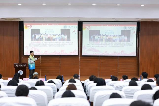 为了弘扬志愿服务精神,传递社会正能量,同时也作为服装学院新生教育的一个重要环节,10月30日,服装学院青年志愿者协会(以下简称“青协”)在临潼校区图书馆二楼报告厅,举办了志愿者入退会暨青协学年工作总结大会。此次大会旨在分享、互动和交流志愿服务的经验,加强志愿者之间的联系和团队的凝聚力,为后续志愿服务工作奠定坚实基础。参与本次会议的有西安市临潼区红十字会宋世君、24级新生辅导员姜萌,校青协及各学院代表韦景萍同学等30人,24级各班团支书及学院注册志愿者120余人。