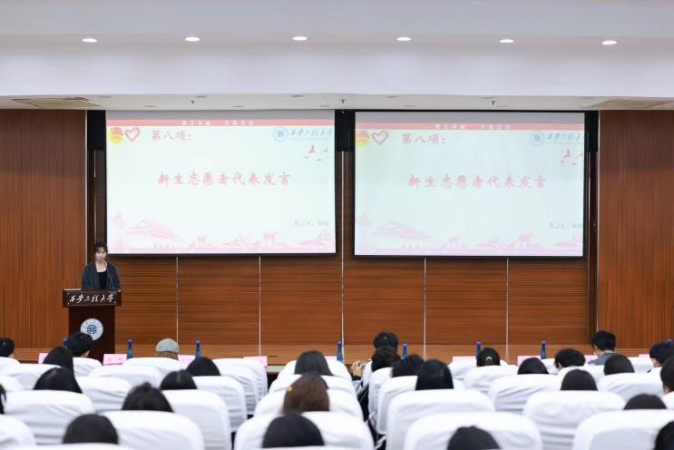 张芷宁同学作为优秀志愿者代表进行发言,通过对丰富多彩且极具价值的志愿活动的回顾表达了对青协这个组织的热爱与感激。青协志愿者的付出或许微不足道,但无数微小的力量汇聚在一起,就能形成一股强大的正能量,照亮社会的每一个角落。新生代表靳姣同学也表示将秉持“奉献、友爱、互助、进步”的志愿精神,以实际行动践行誓言。用爱心、耐心和细心服务每一个需要帮助的人,用青春和汗水书写志愿服务篇章。