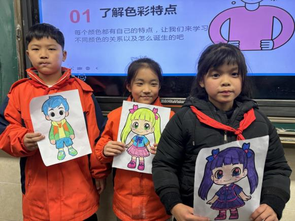 师生们继续赴康复路小学开展第六次美育润心特色课程。本次课程的主题为“色彩的情感”,通过对色相、色谱的了解分析,带领同学们探究不同色彩所传达给人的丰富情感,让同学们学会怎样使用色彩表达情感,从而深刻体会到色彩的魅力。