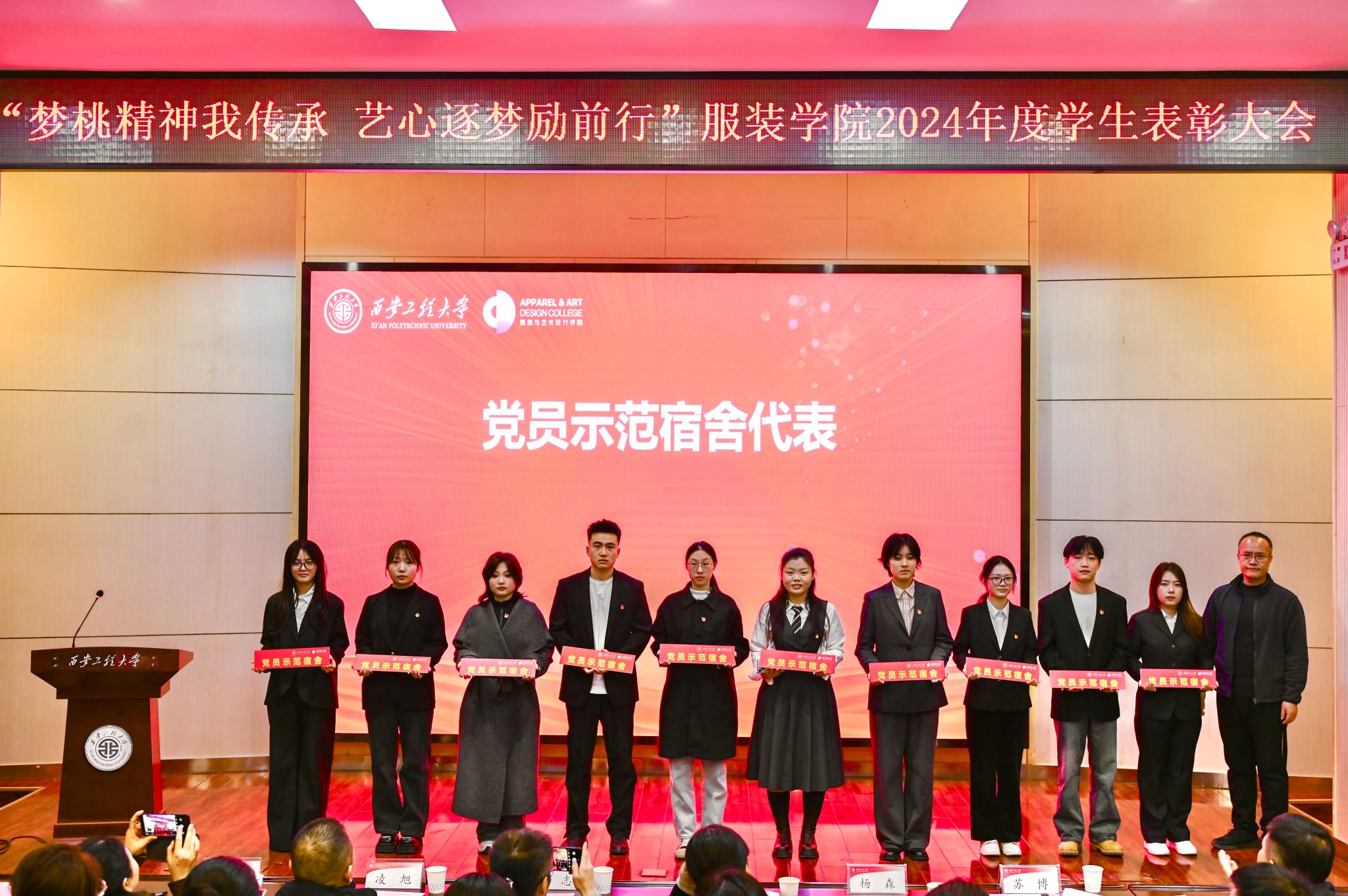 在热烈的掌声中现场嘉宾分别为受表彰的个人和集体颁奖,为“党员示范宿舍”授牌。本次表彰大会如灯塔,激励着全院学生在品德、学业、能力等各个维度实现全面发展与自我超越,推动学院教育教学质量与人才培养水平迈向更高台阶。