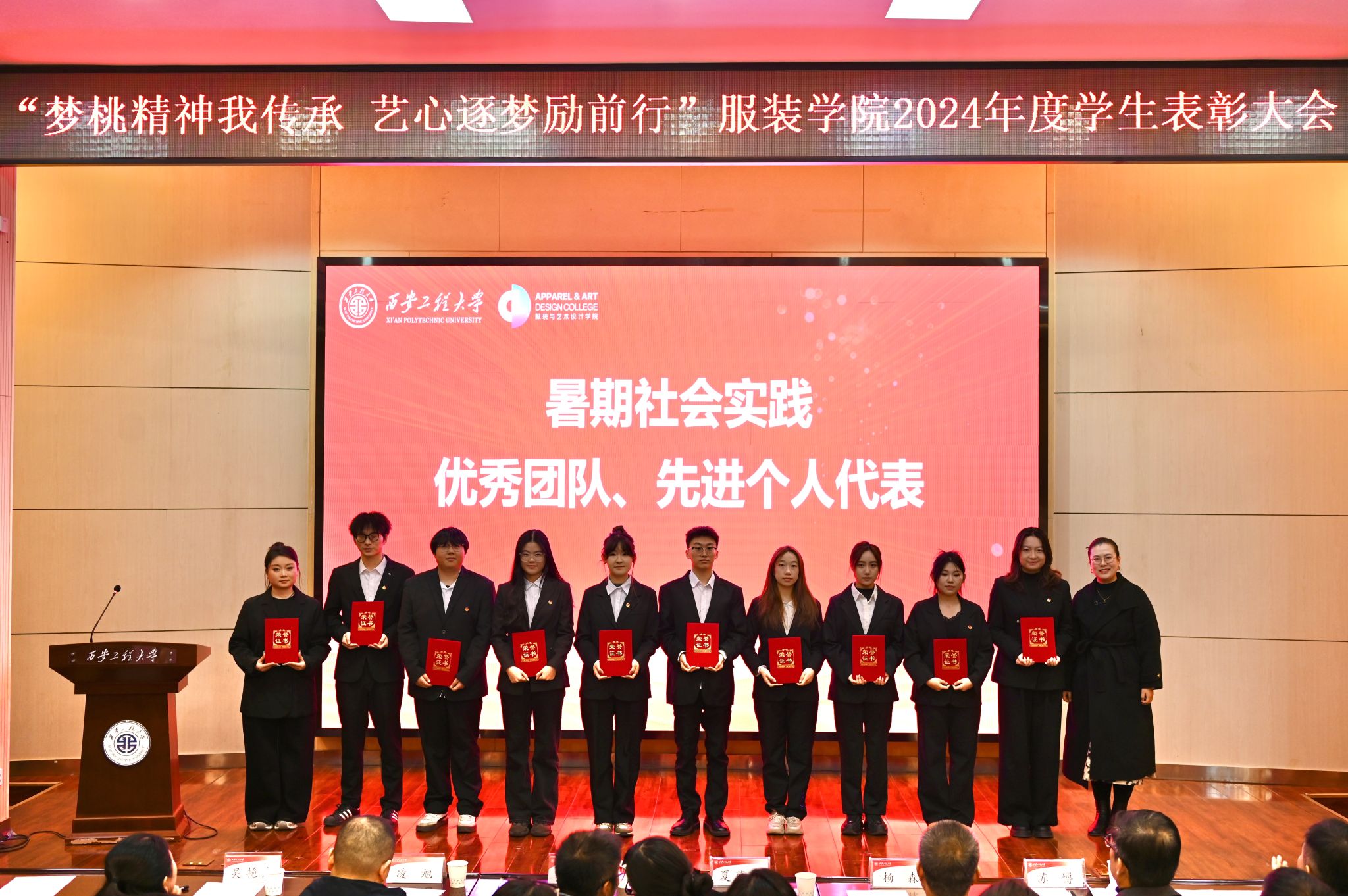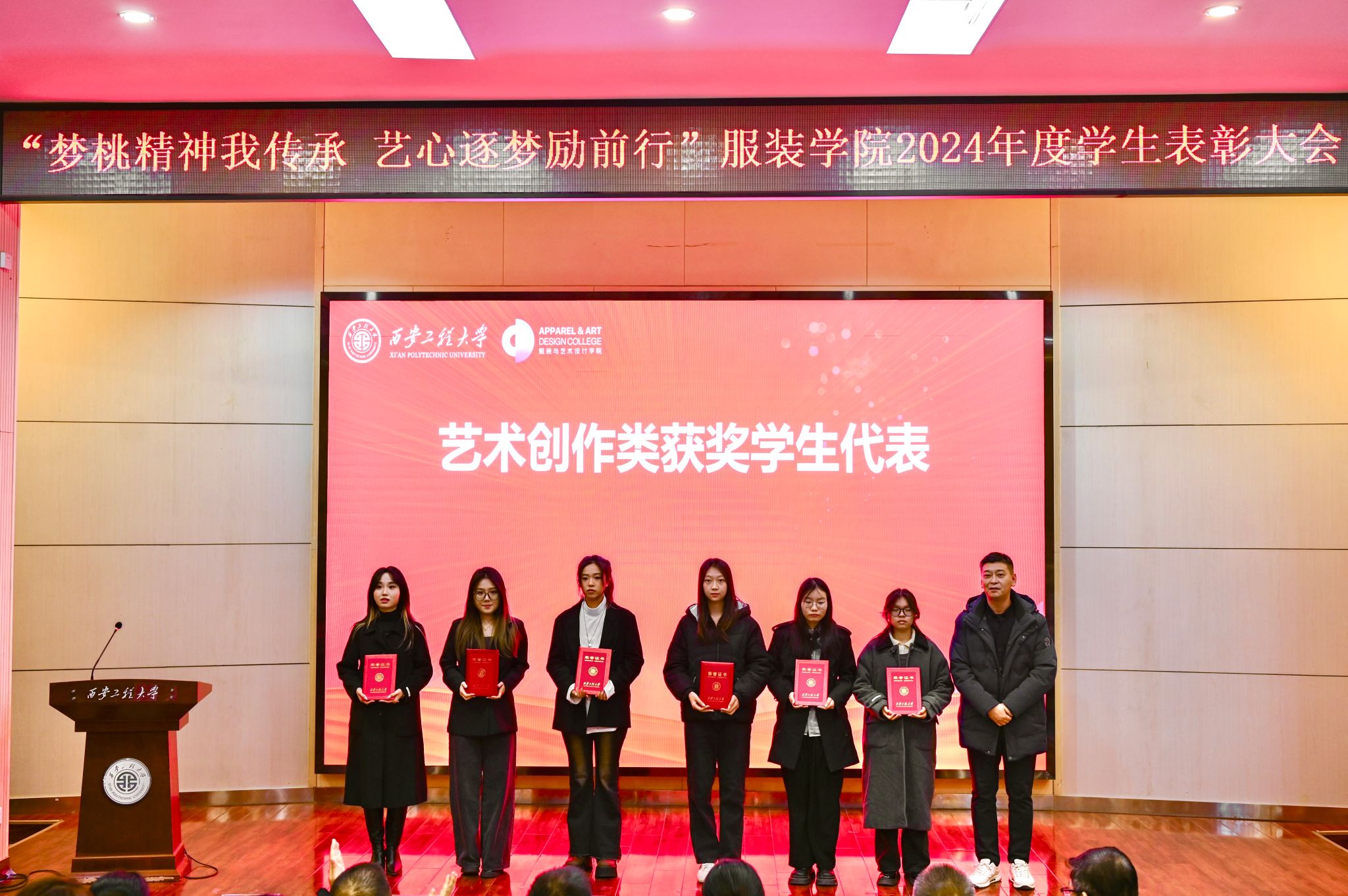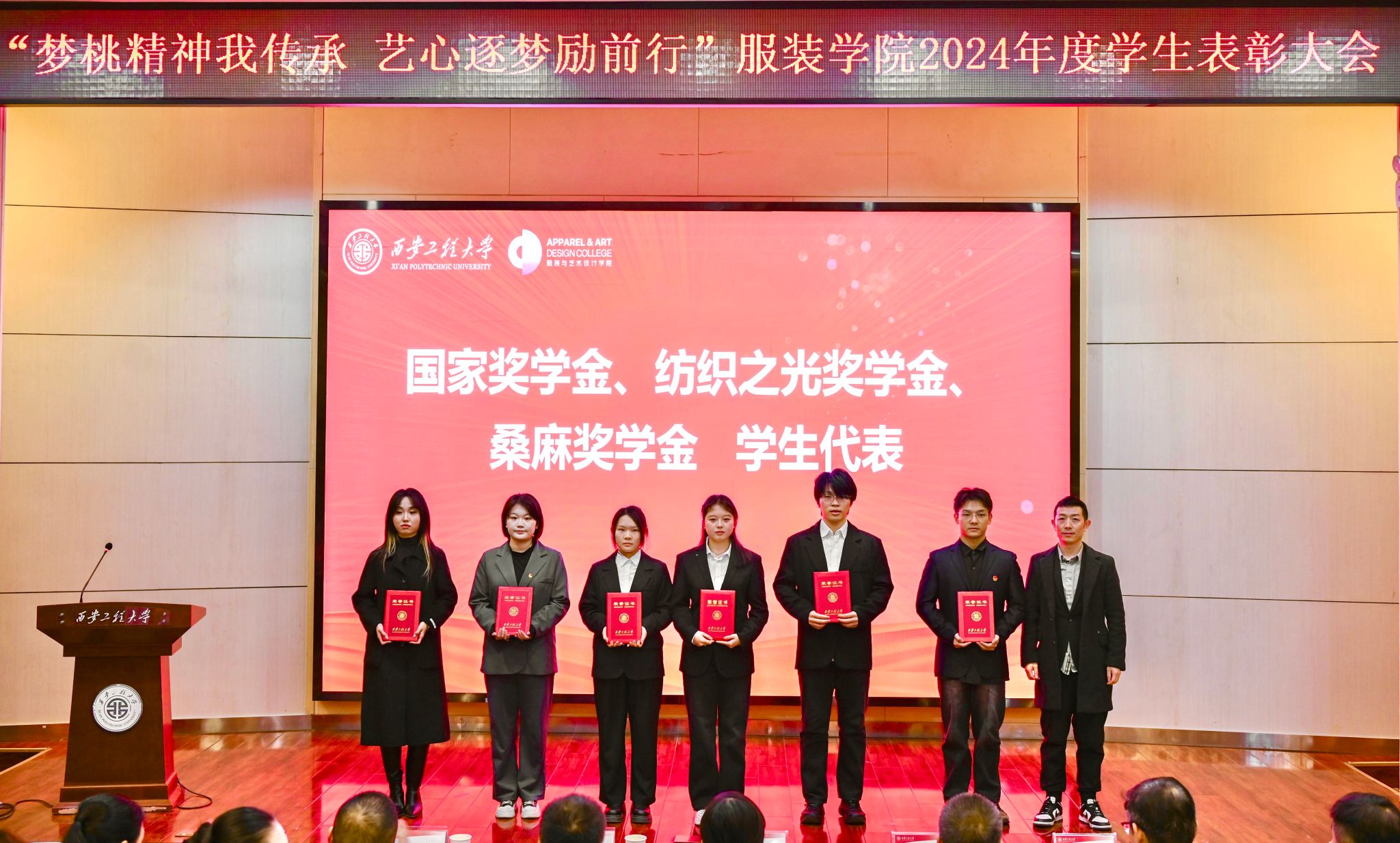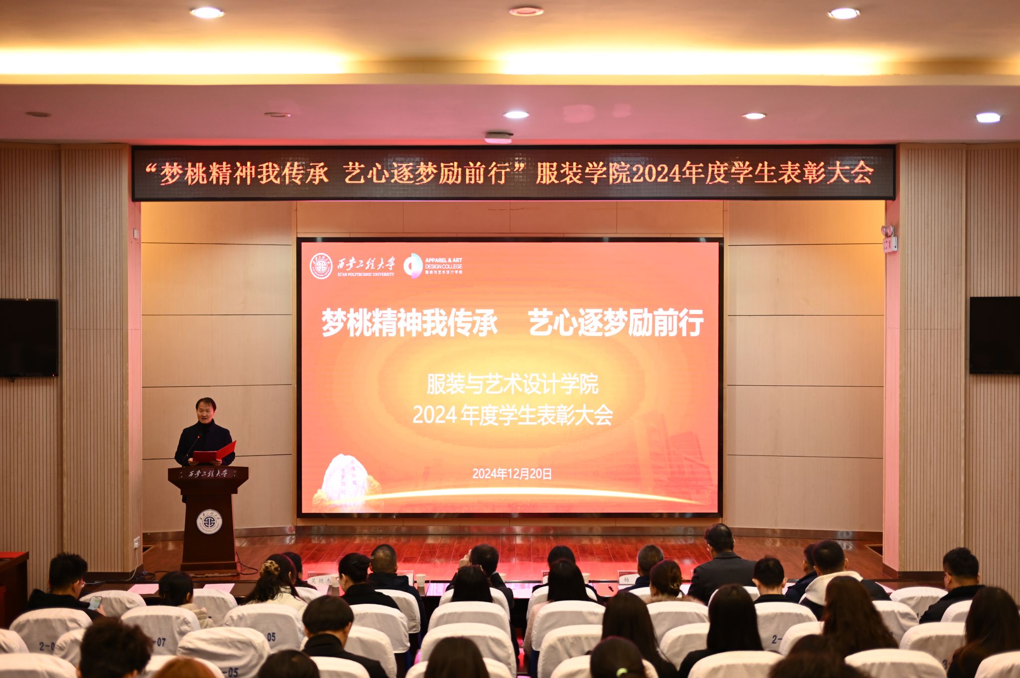 于2024年12月20日在金花校区西纺报告厅举行2024年度学生表彰大会。本次大会旨在高度肯定并表彰获奖学生,鼓励广大同学以优秀学生代表为榜样,传承新时代梦桃精神,进一步激发全体同学积极向上、艺心逐梦的活力。大会共颁出22类奖项,包括过去一年中的学术研究、社会实践、学科竞赛、志愿服务等各方面有卓越表现与突出贡献的个人和集体。