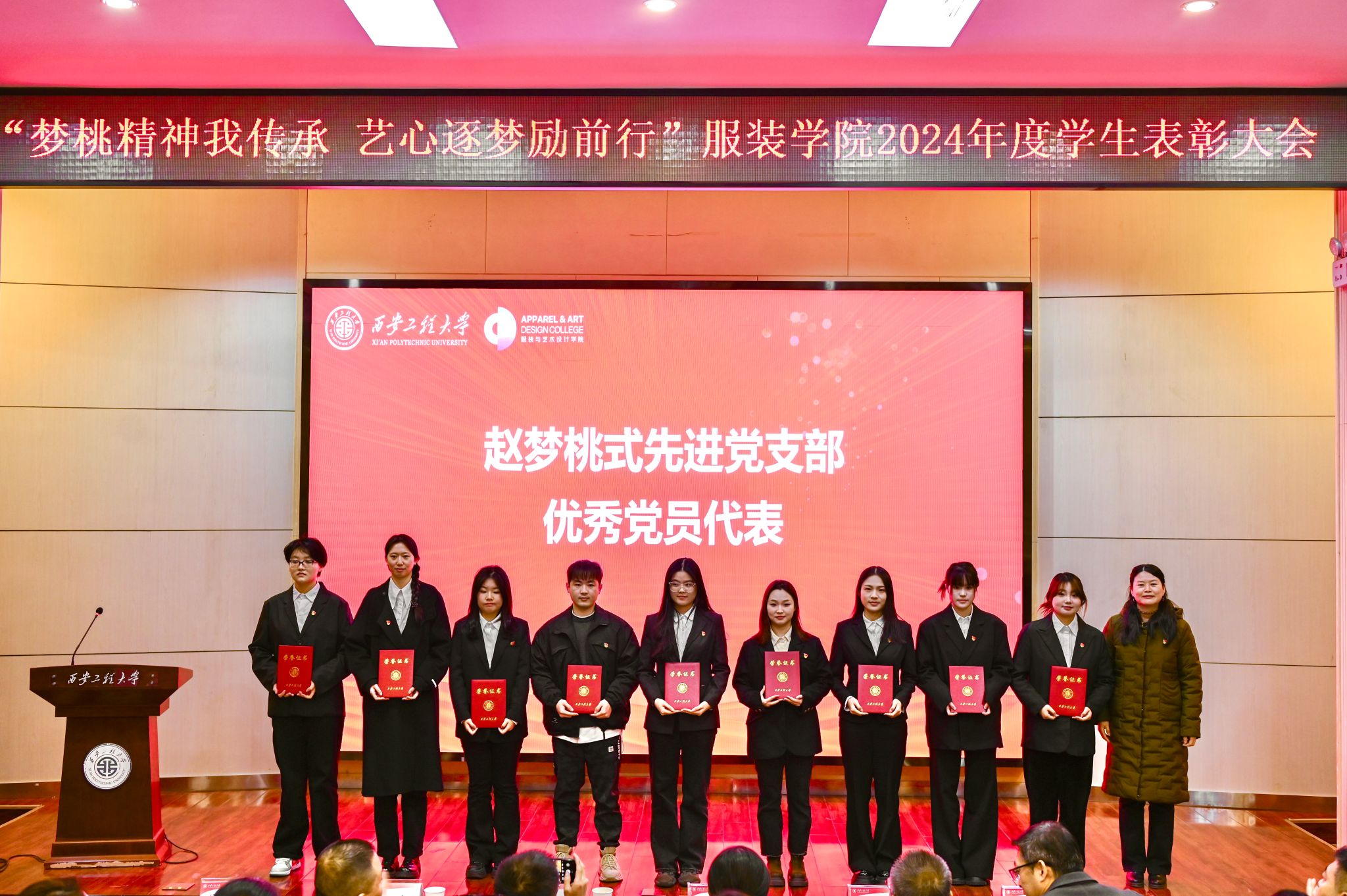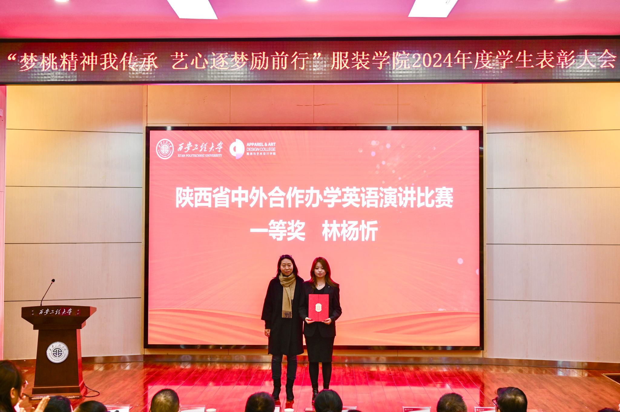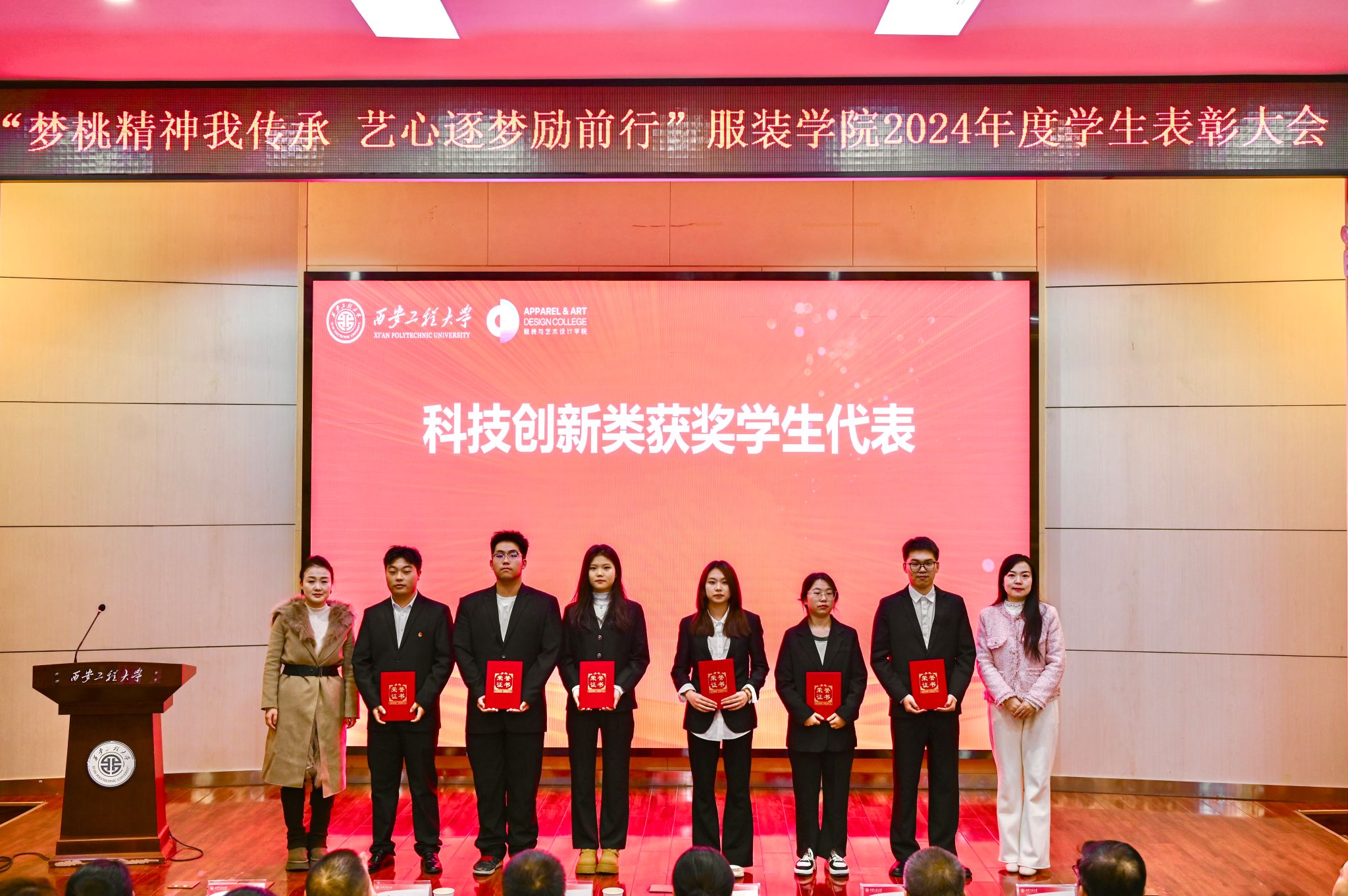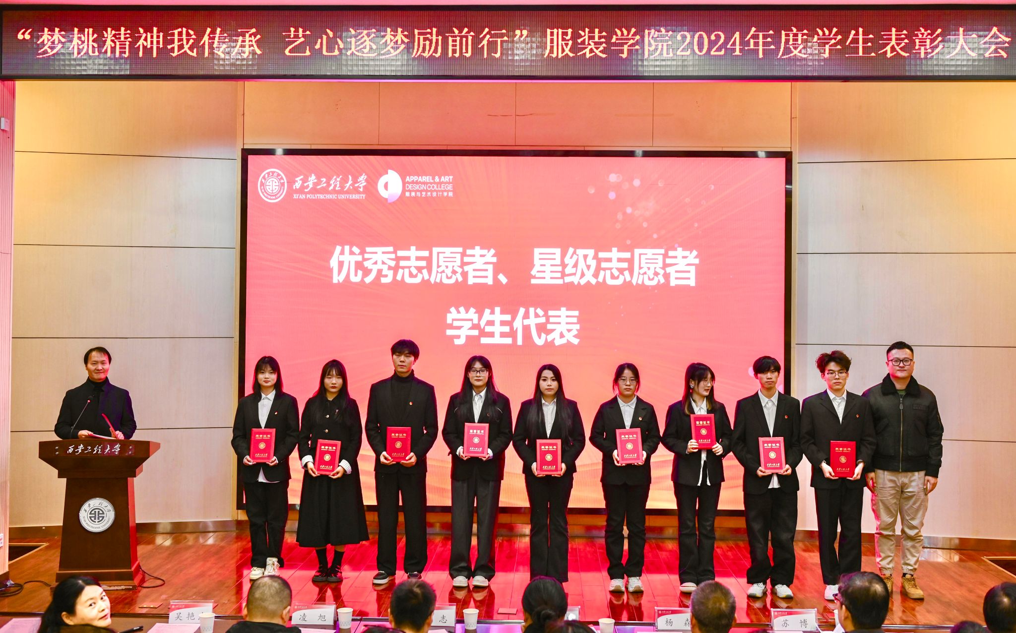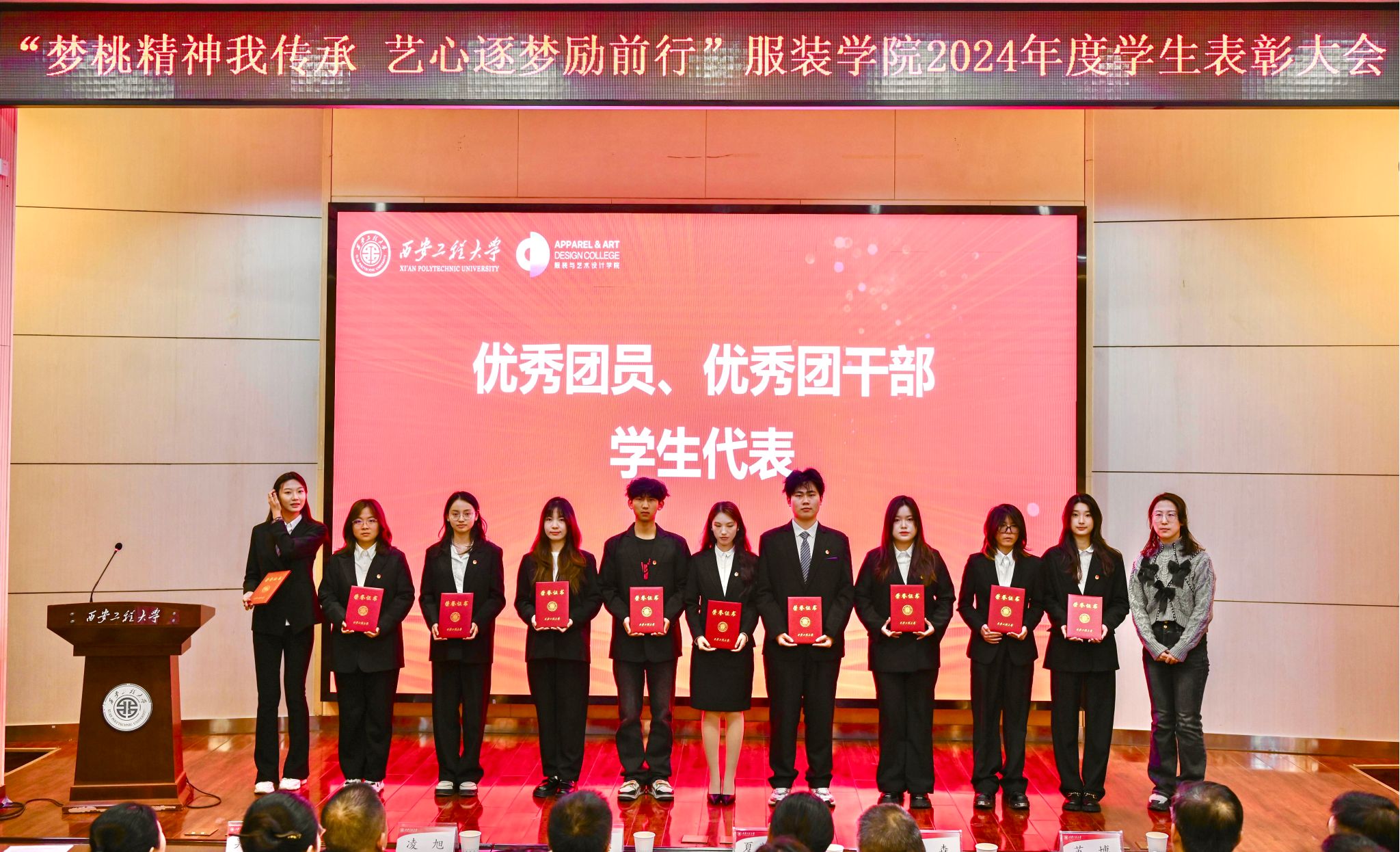 于2024年12月20日在金花校区西纺报告厅举行2024年度学生表彰大会。本次大会旨在高度肯定并表彰获奖学生,鼓励广大同学以优秀学生代表为榜样,传承新时代梦桃精神,进一步激发全体同学积极向上、艺心逐梦的活力。大会共颁出22类奖项,包括过去一年中的学术研究、社会实践、学科竞赛、志愿服务等各方面有卓越表现与突出贡献的个人和集体。