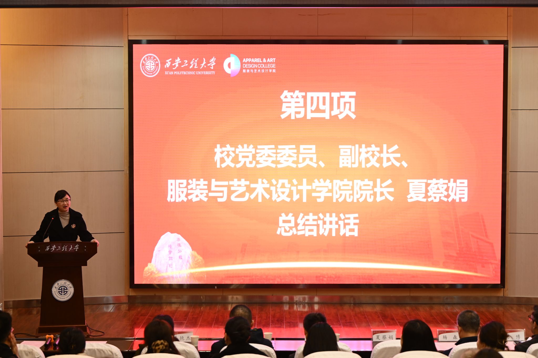 夏蔡娟为陕西省大学生自强之星、学校五四青年奖章、校级优秀学生标兵获得者颁奖并讲话,她向所有受表彰的个人和集体表示最热烈的祝贺,也表达了对所有同学的殷切期望。她表示:“希望今天受到表彰的同学发扬实事求是、谦虚谨慎的作风,在今后的学习和生活中,继续追求卓越,带领更多的同学共同进步。也希望仍在默默努力的其他同学砥砺奋进、厚积薄发!”