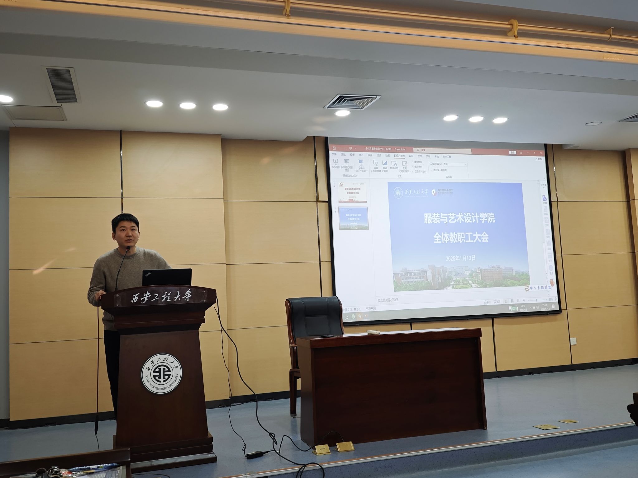 接着各位副院长分别就各自分管工作进行重点强调和安排部署。副院长(主持日常工作)刘凯旋聚焦学科建设,强调要凸显陕西地域特色,深度融入AI技术,推动设计学的交叉融合与创新发展,要加大师资队伍建设投入,积极鼓励并大力支持教师申报国家级项目。期间,刘凯旋还分享了申报国家级社科基金项目的宝贵经验与深入思考,引导教师紧密结合学院特色与陕西地域文化,精准寻找科研突破口。