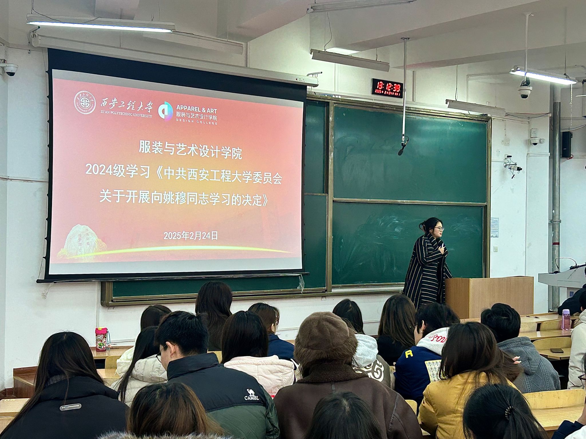委员会关于开展向姚穆同志学习的决定》进行集体学习,要求各班级内开展学习活动,一是要学习姚穆院士坚守初心、纺织报国的家国情怀。二是要学习姚穆院士躬耕教育、甘为人梯的师者风范。三是要学习姚穆院士创新探索、勇攀高峰的科学精神。四是要学习姚穆院士扎根西北、无私奉献的崇高品格。