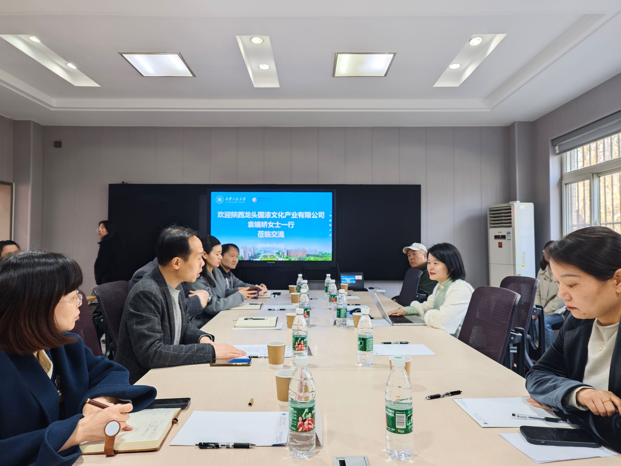 学院领导班子对袁端姣一行的到访表示热烈欢迎,并对西安漆器集团在漆艺文化传承与创新方面取得的成就给予了高度评价。袁端姣毕业于西安交通大学,返乡在安康创办西安漆器集团,下设陕西龙头国漆文化产业有限公司、西安漆器汉唐文化产业有限公司等多家子公司。会上,她介绍了集团发展历程及核心业务,西安漆器集团作为大漆领域的标杆企业,致力于大漆文化以及陕西非物质文化遗产的传承与创新,业务涵盖漆器设计、大漆壁画、非遗技艺培训、漆材料研发等多个领域。她希望通过与学院的合作,将传统漆艺与现代设计相结合,进一步推动漆艺文化的传播。此外,集团将为学院学生提供实习机会,帮助学生将理论知识与实践相结合。多位教师代表与袁端姣总经理从教学和科研等方面进行了深度沟通。