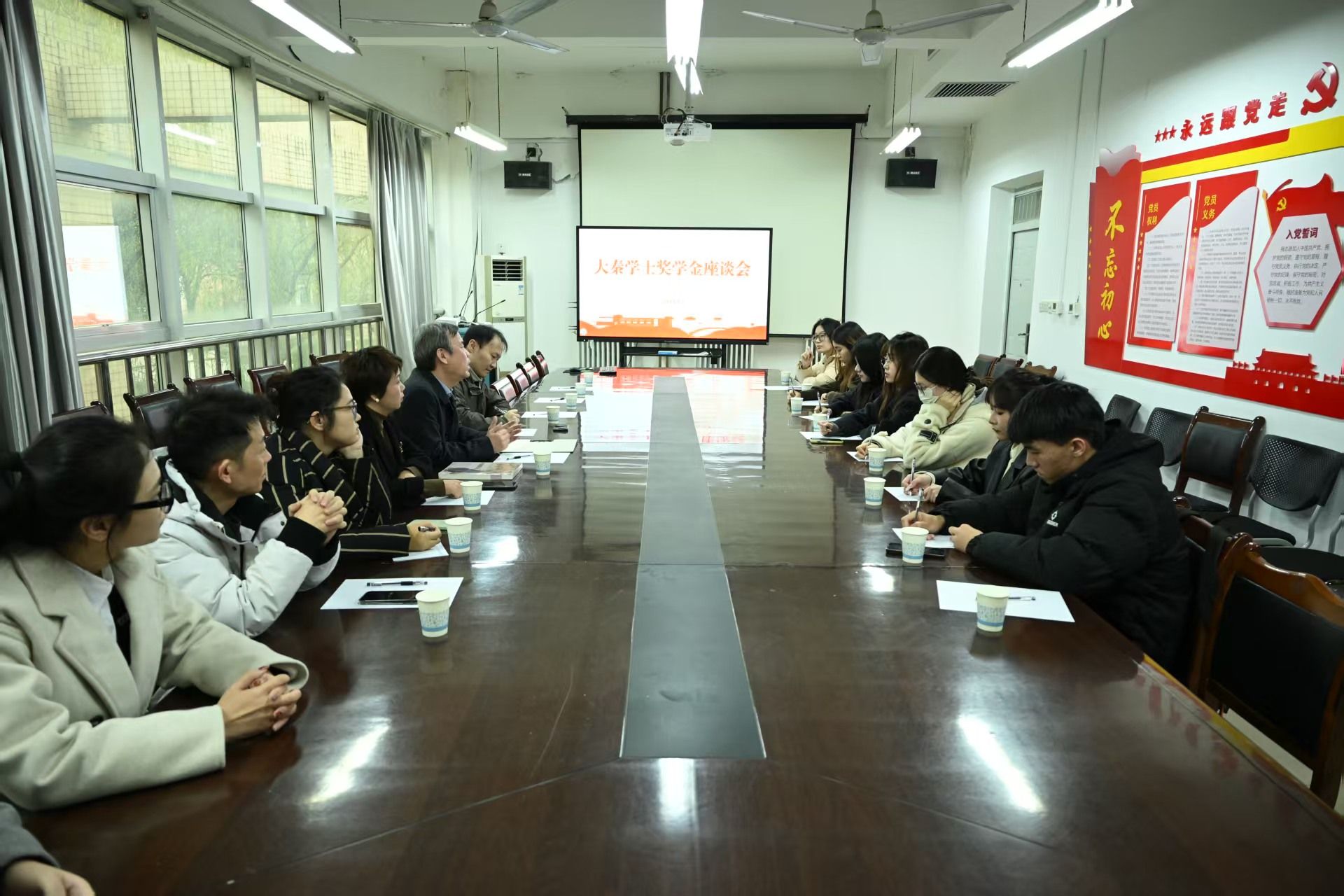 2025年12月3日,陕西大秦学士服饰有限公司董事长雷刚一行前往临潼校区,与服装学院获得“大秦学士奖学金”的优秀学子展开座谈。学院党委副书记马磊及相关师生代表共同参与。座谈会现场气氛热烈,交流深入。