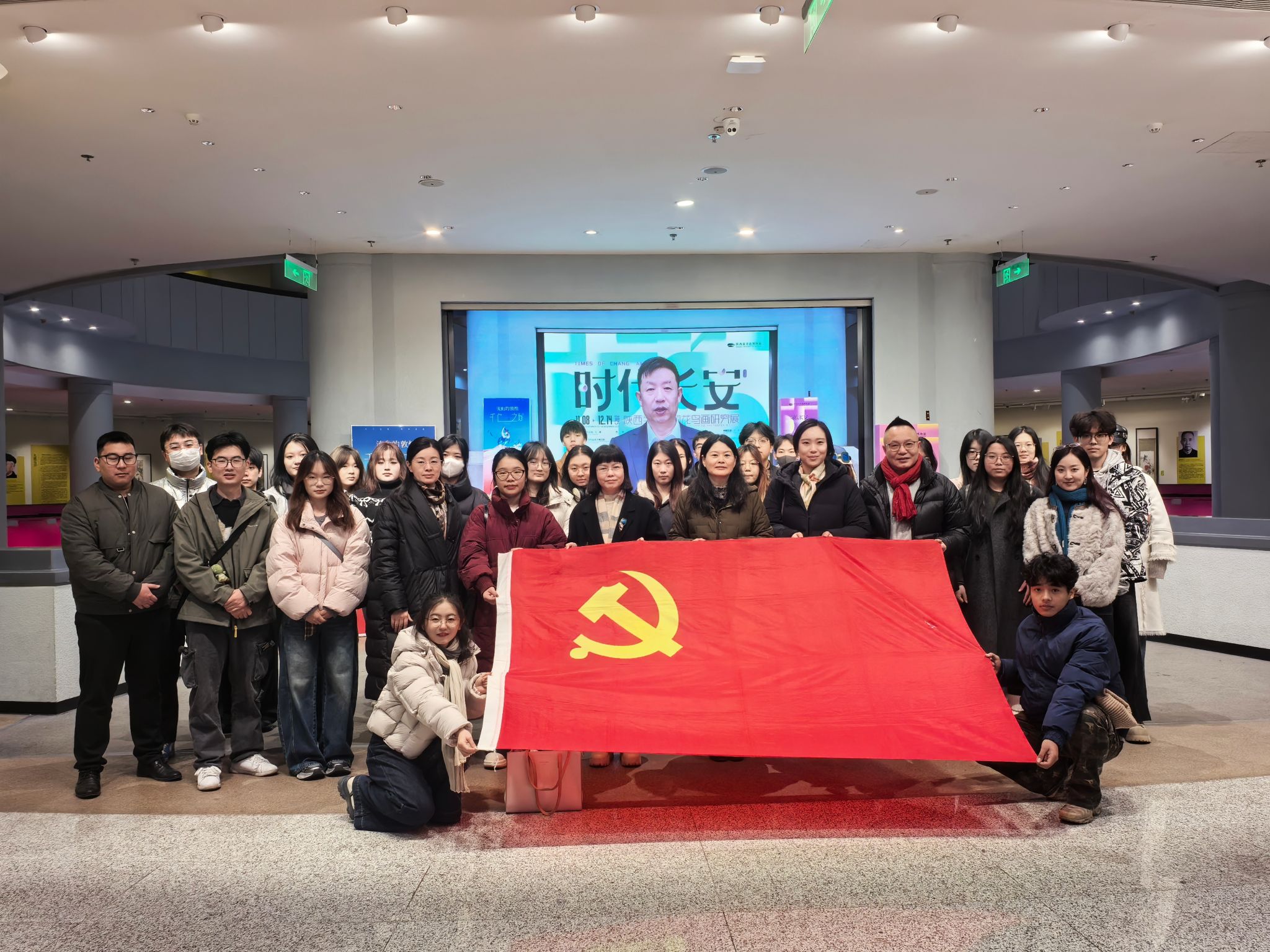 党委组织师生、党员代表赴陕西省美术博物馆开展师生联合主题党日活动,集体参观“时代长安——陕西当代中国花鸟画研究展”。