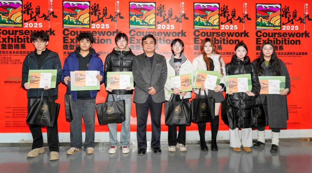 本次展出了来自2023级美术学专业风景写生实践课每位同学的作品包含油画、水彩画100余幅,同时展出的还有2023级、2022级美术学专业水彩画技法课程的60余幅优秀作品,主题涵盖自然风景、人文情境等。其中风景写生课程到江西婺源、景德镇等地开展写生实践,强调归纳总结、样式技法、现场感受等方面的综合能力提升训练,加强课程思政内容的融入,以“绘乡村新貌 悟振兴之路 艺路相伴 绘梦婺源”为主题展开实践,提升学生综合素养。造型艺术系坚持以学生成长为核心,提升学生专业自信,激发学生学习动力,彰显了教学成效,本次展览还设置了奖项及奖品,以鼓励同学们的努力付出,现场嘉宾和领导分别为获奖学生颁发了奖品和证书。开幕式后还组织了研讨会,对课程建设进行了深入研讨。本次展览将持续展出至12月27日。