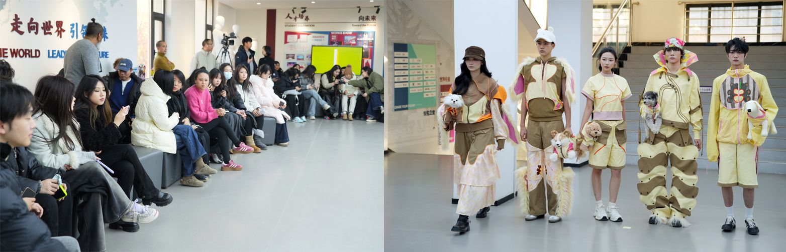 中英合作办学项目2023级与2024级学生课程结课作品展顺利举行。活动分设于学校主楼大厅与服装学院表演厅,分别展出“时尚创意实践”与“时装设计调研-创造性思维探究”两门课程的成果。