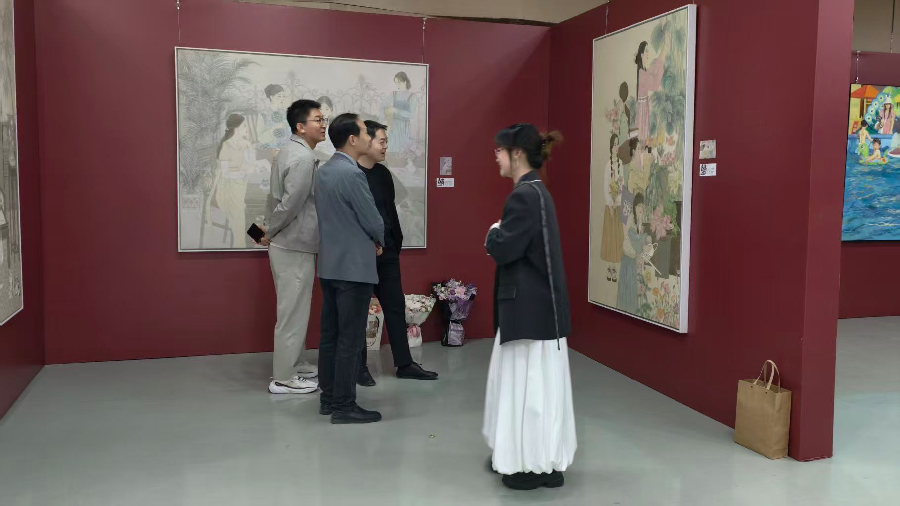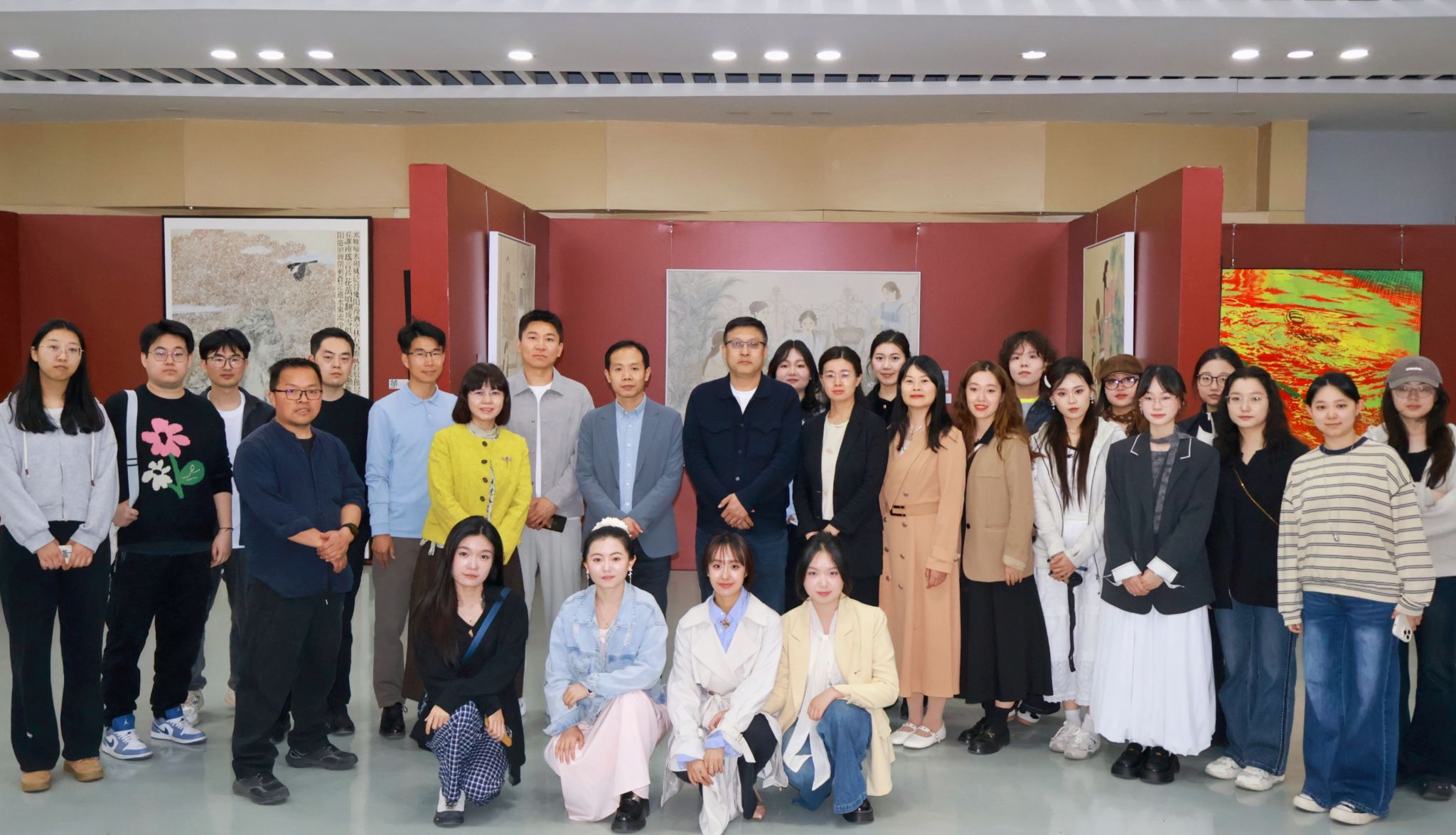 开幕式后,院领导一行来到美术与书法展区(金花校区图书馆1楼)现场与美术与书法师生亲切交谈、深入交流,倾听学子们的创作思路与心得,对同学们三年来的成果给予肯定并表达对未来的期许。
