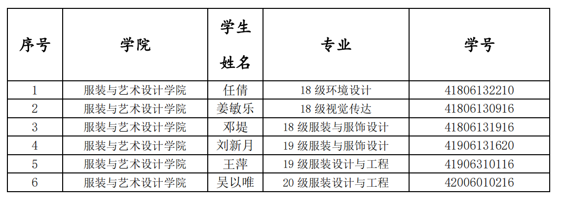 根据红桃视频 《关于做好2020-2021学年国家奖学金评审工作的通知》的评选要求,经各年级初评,学院审核,现将服装学院2021年国家奖学金拟推荐名单进行公示,公示后由学校进行进一步评比、确定。公示时间为2021年9月22日至9月27日(5个工作日)。如有异议,请于公示期内向学院反映。