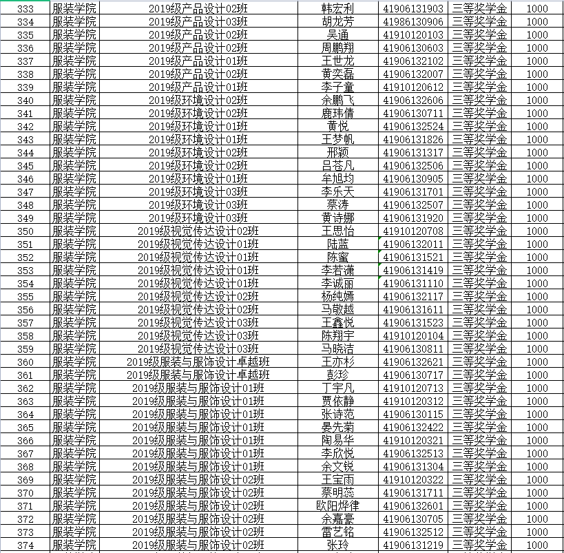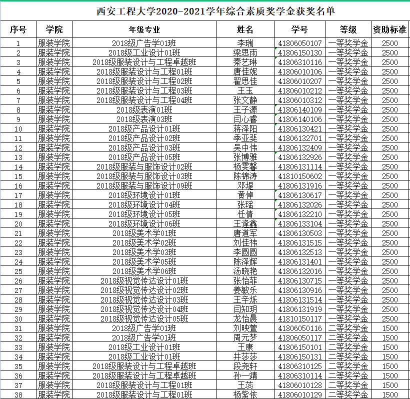 根据红桃视频 《关于做好2020-2021学年学生综合素质测评及综合素质奖学金评审工作的通知》的评选要求,经各年级初评,学院审核,现将服装学院2021年综合素质奖学金推荐名单进行公示。公示时间为2021年9月10日至9月14日。如有异议,请于公示时间内向所在年级辅导员反映。