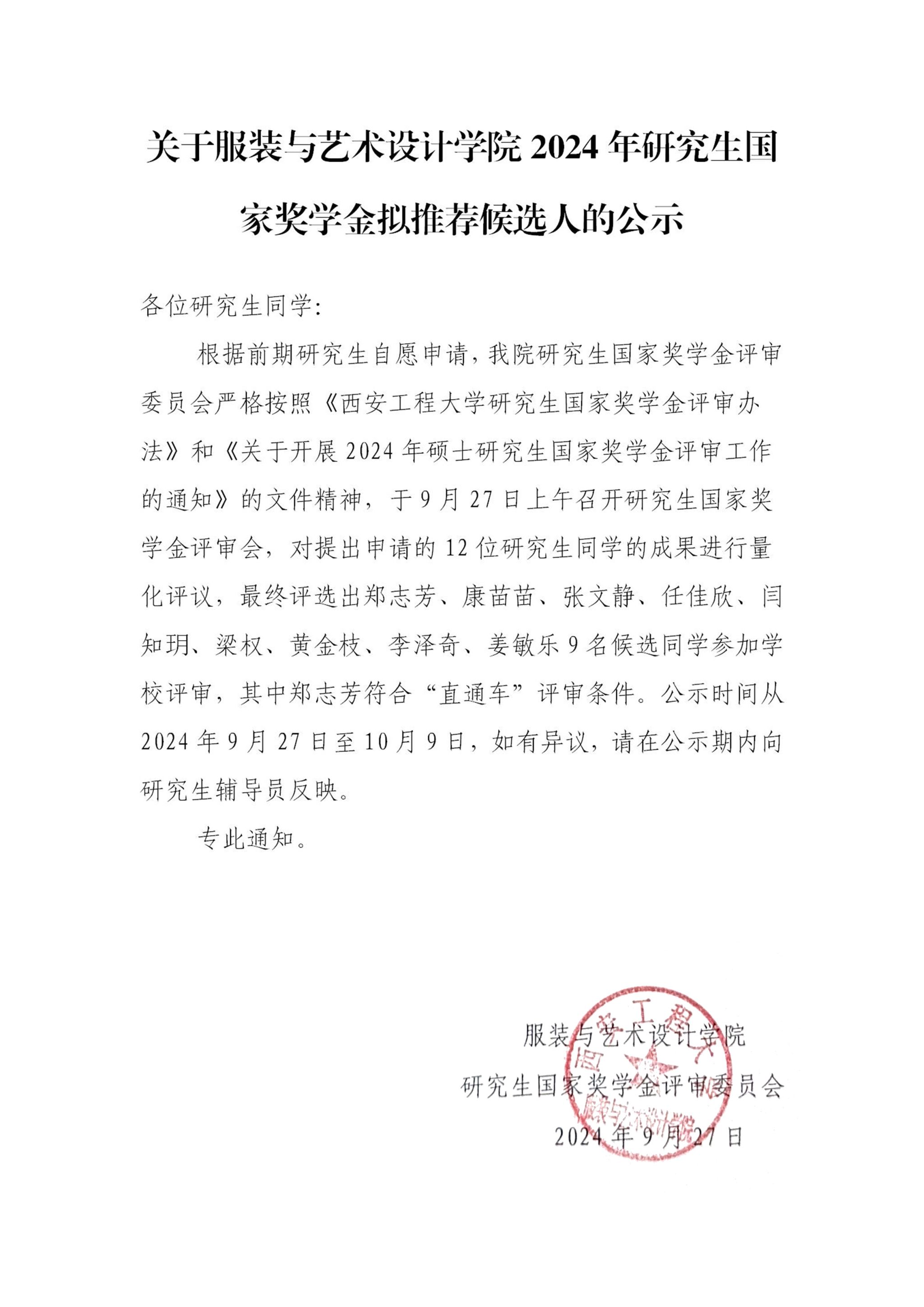 关于红桃视频 2024年研究生国家奖学金拟推荐候选人的公示