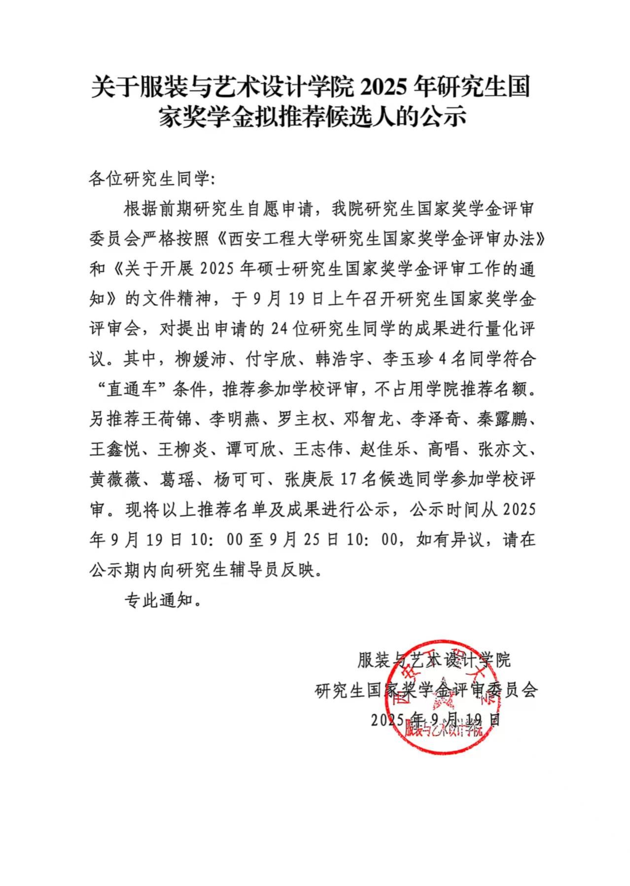 关于红桃视频 2025年研究生国家奖学金拟推荐候选人的公示