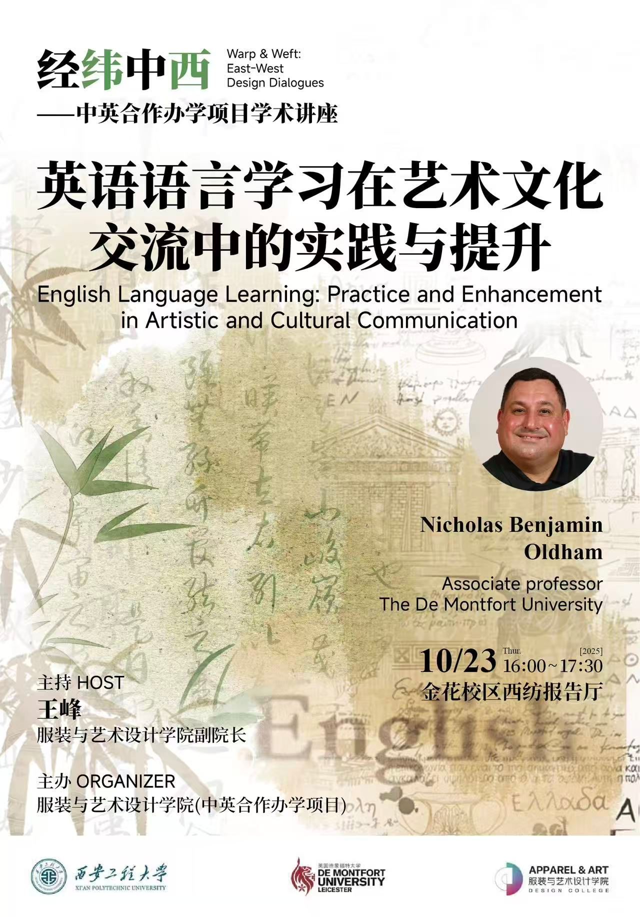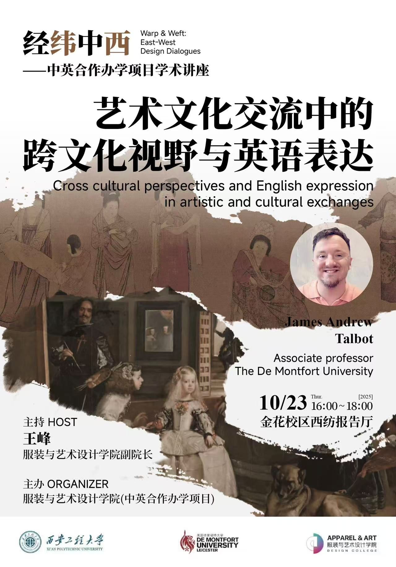 讲座预告|服装学院将于10月23日(周四)16:00-18:00在金花校区西纺报告厅举办经纬中西—中英合作办学项目学术讲座,主要分为艺术文化交流与英语语言学习和艺术文化交流中的跨文化视野与英语表达两个板块进行全英文讲座,欢迎大家讨论交流!