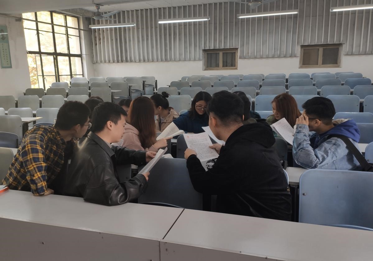 党员同志们在服装楼三楼机房学习观看《榜样4》