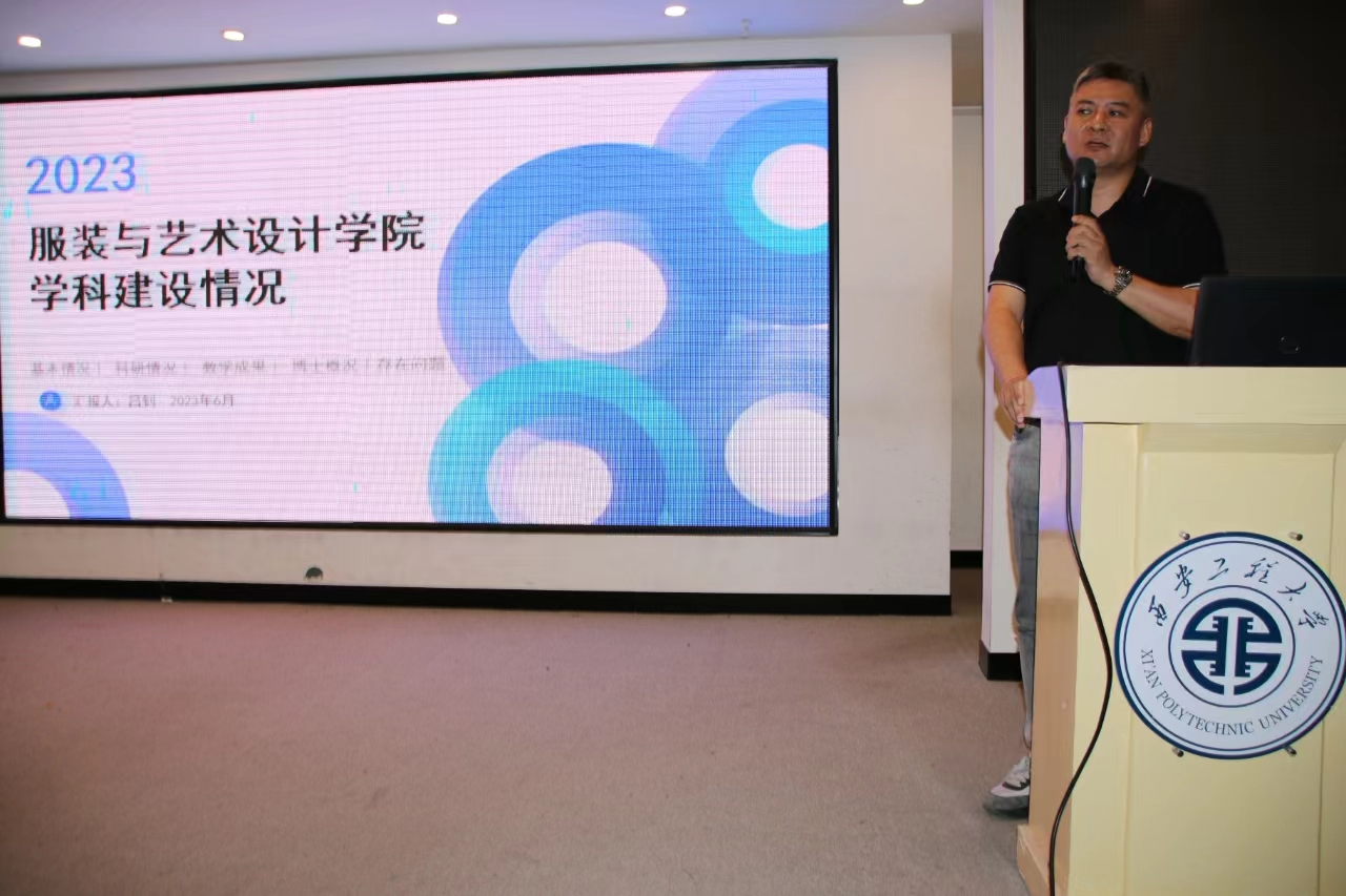 吕钊院长在大会上做学院学科建设专题报告。他首先将学院目前学科建设的基本情况进行了介绍,肯定了学院在师资力量、教学成果等方面取得的成绩,分析了学院的优势学科设计学的有关情况,也指出学院在软科排名具体指标上还存在一些短板与不足之处,并分析了造成这些问题的具体原因。他特别要求全院青年教师积极参与人文、艺术等方面的科研,多撰写相关专业论文,努力提升自己的学历与职称,为学院学科建设做出积极贡献。最后,他对下一阶段学院学科建设提出了具体工作要求。